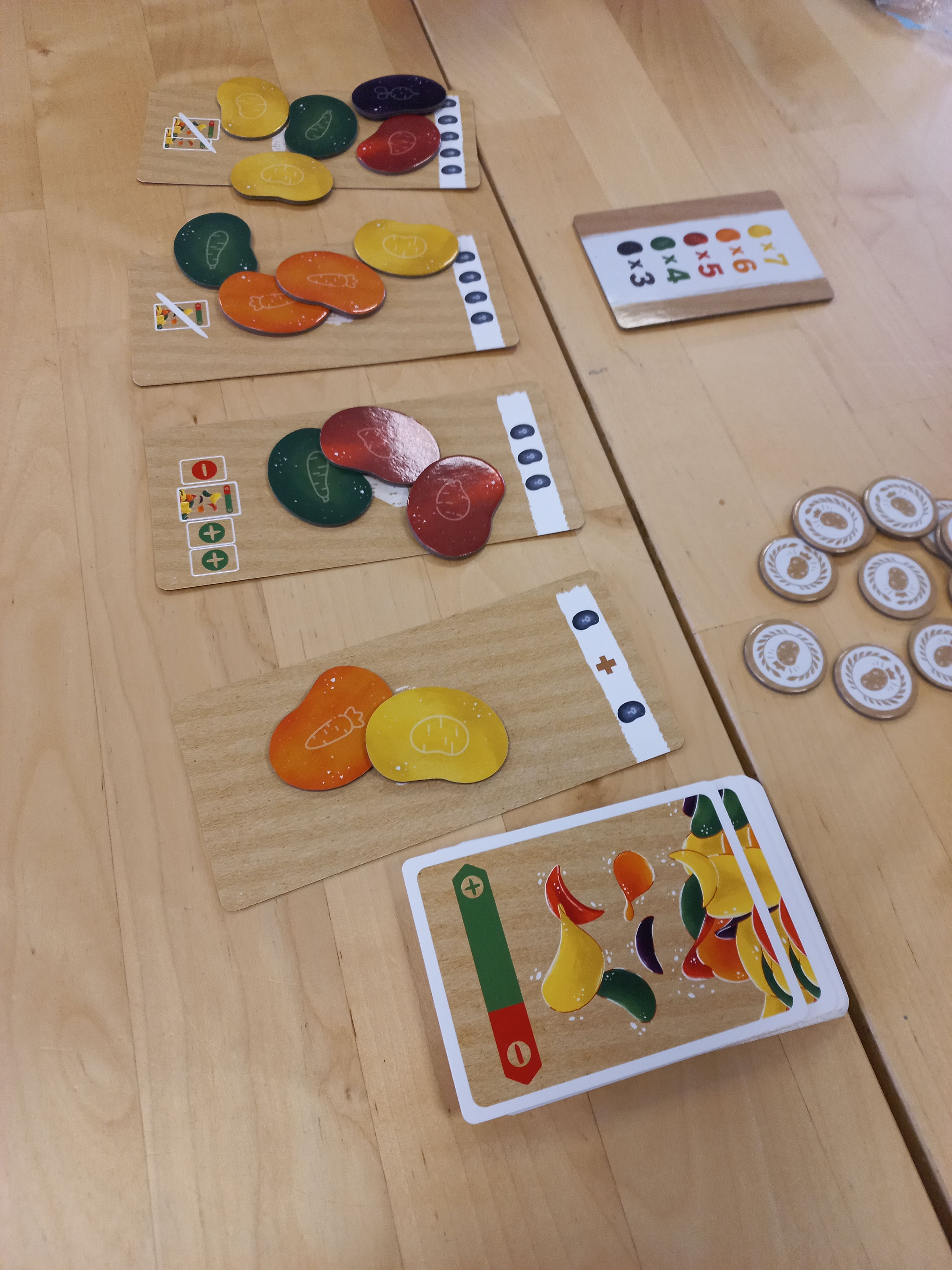 très bon jeu façon loto mais a la différence d’un super méga lucky box ou augustus, chaque joueur décidé quelle pièce bouger afin que ttlm bouge sa pièce dans une des cases dispo afin de la figer jusqu’à la fin de la partie.