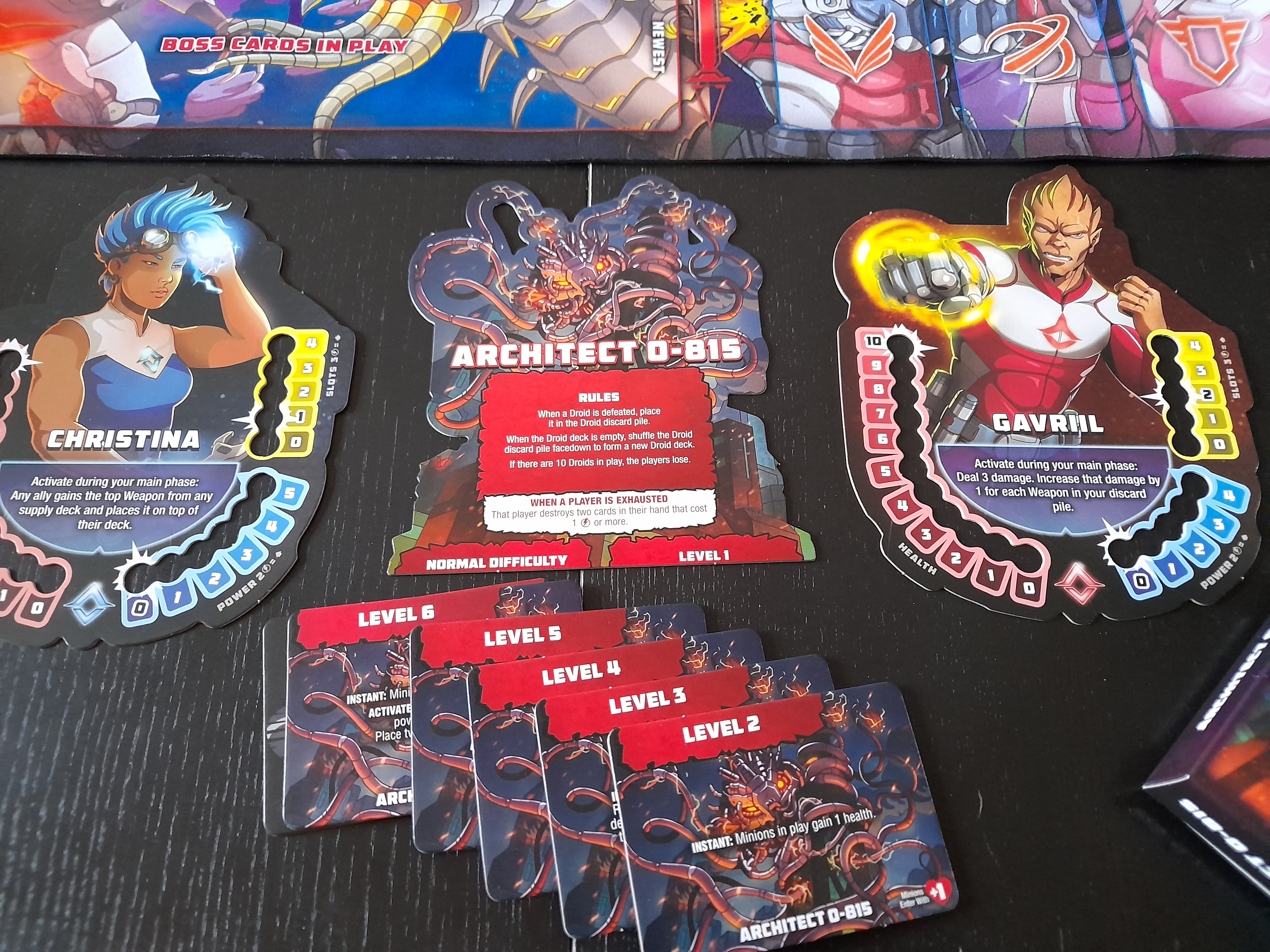 Christina surcharge la carte technologie (la jouer directement sans l’intégrer à son deck) et maximise les dégâts et Gavril terminera le travail.