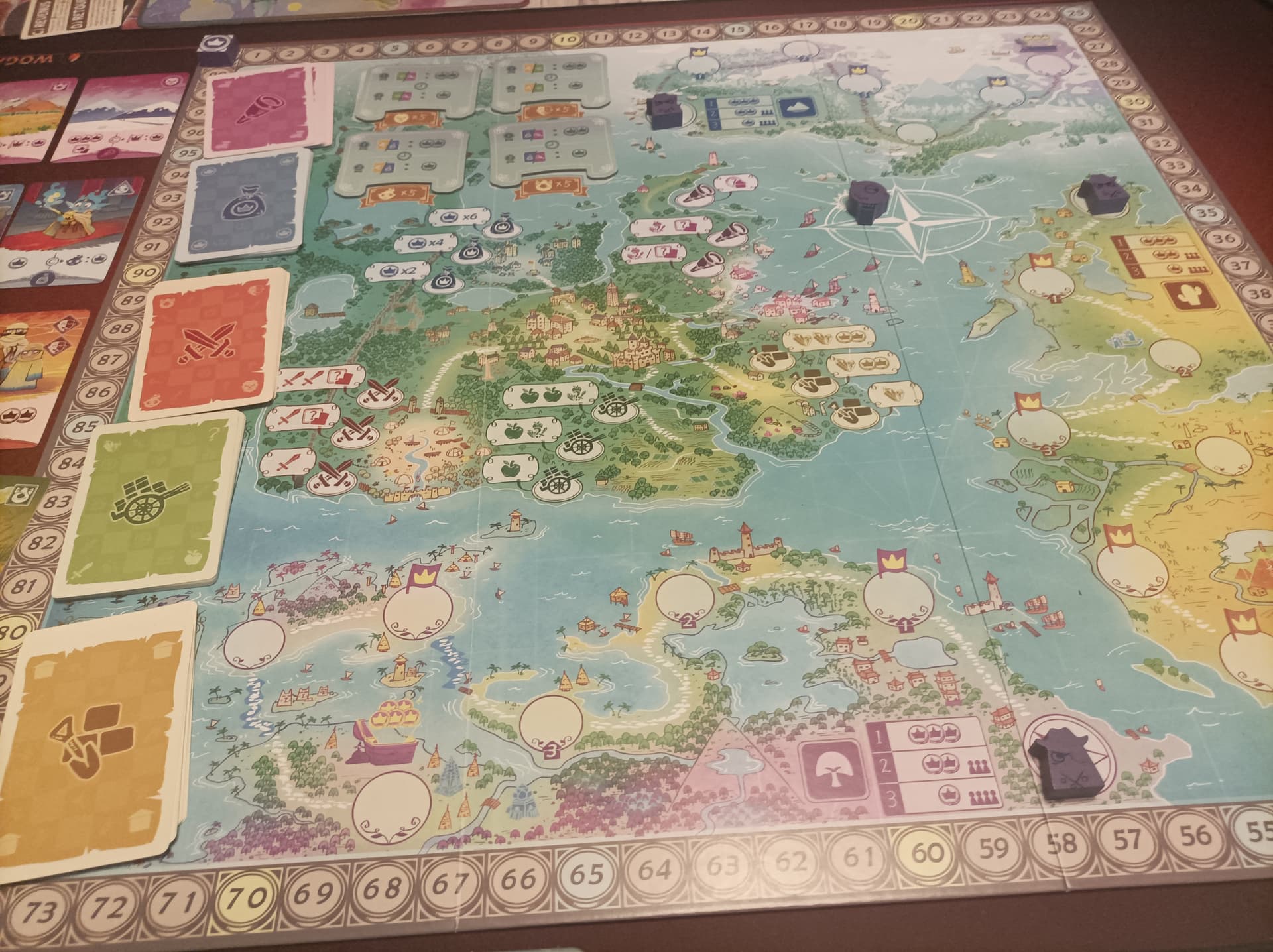 La Famiglia (avec l’accent mafieux sicilien) : “Tu as trahi la familleu C… Tu auras bientôt des nouvelles… on t’a pas oublié avekeu l’équipeuuu…” Excellent jeu : ça complote en équipe, ça balance des voitures piégés, ça retourne la populace contre un concurrent, ça contrôle les mers, ça fait de l’argent avec les labos clandestin… Mais si t’es pas bon à pierre/feuille/ciseau ça sert à rien… ^^ (j’exagère… beaucoup…)