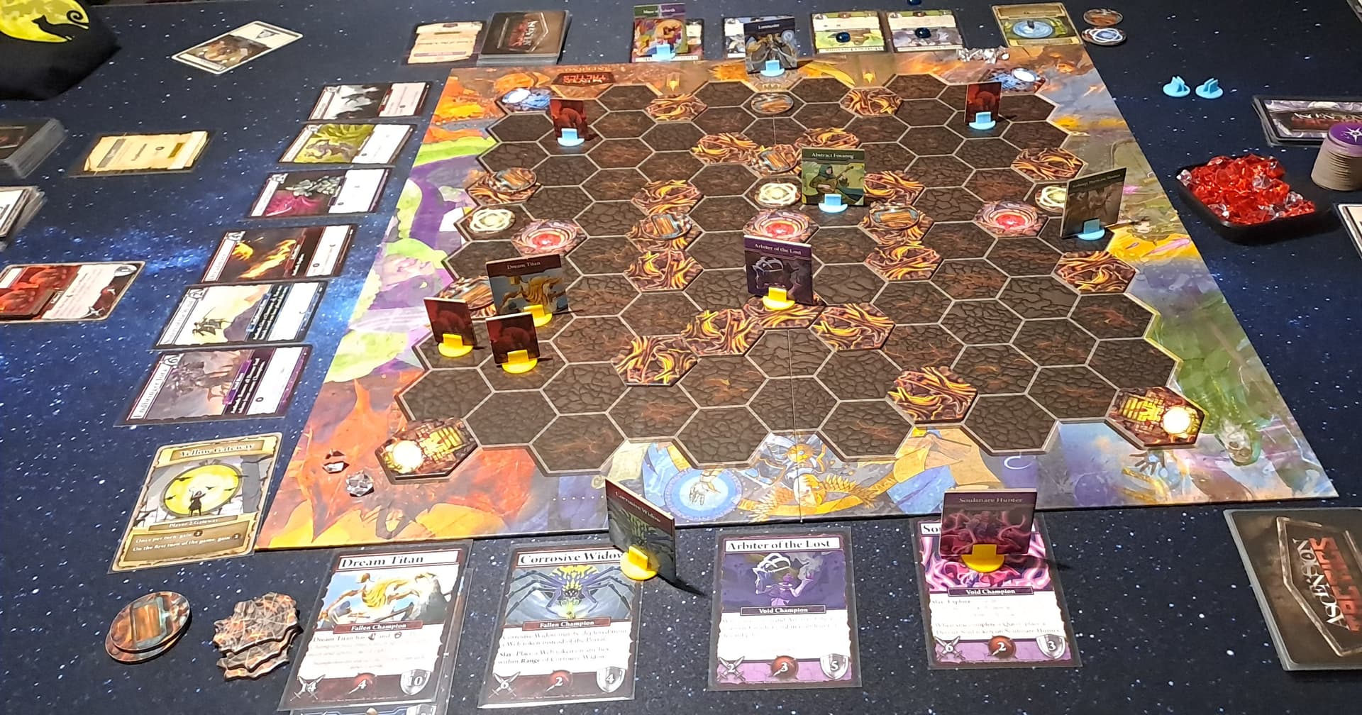 Lorsqu’une quête est piochée du deck et si sa condition peut être remplie, la quête va être donnée ou plutôt attachée à un Champion et ceci de manière permanente même si le Champion est défait (contrairement aux cartes Construct qui sont défaussées). Leurs effets sont très puissants mais il faut pouvoir les accomplir dans le tour où elles sont piochées, pas facile.