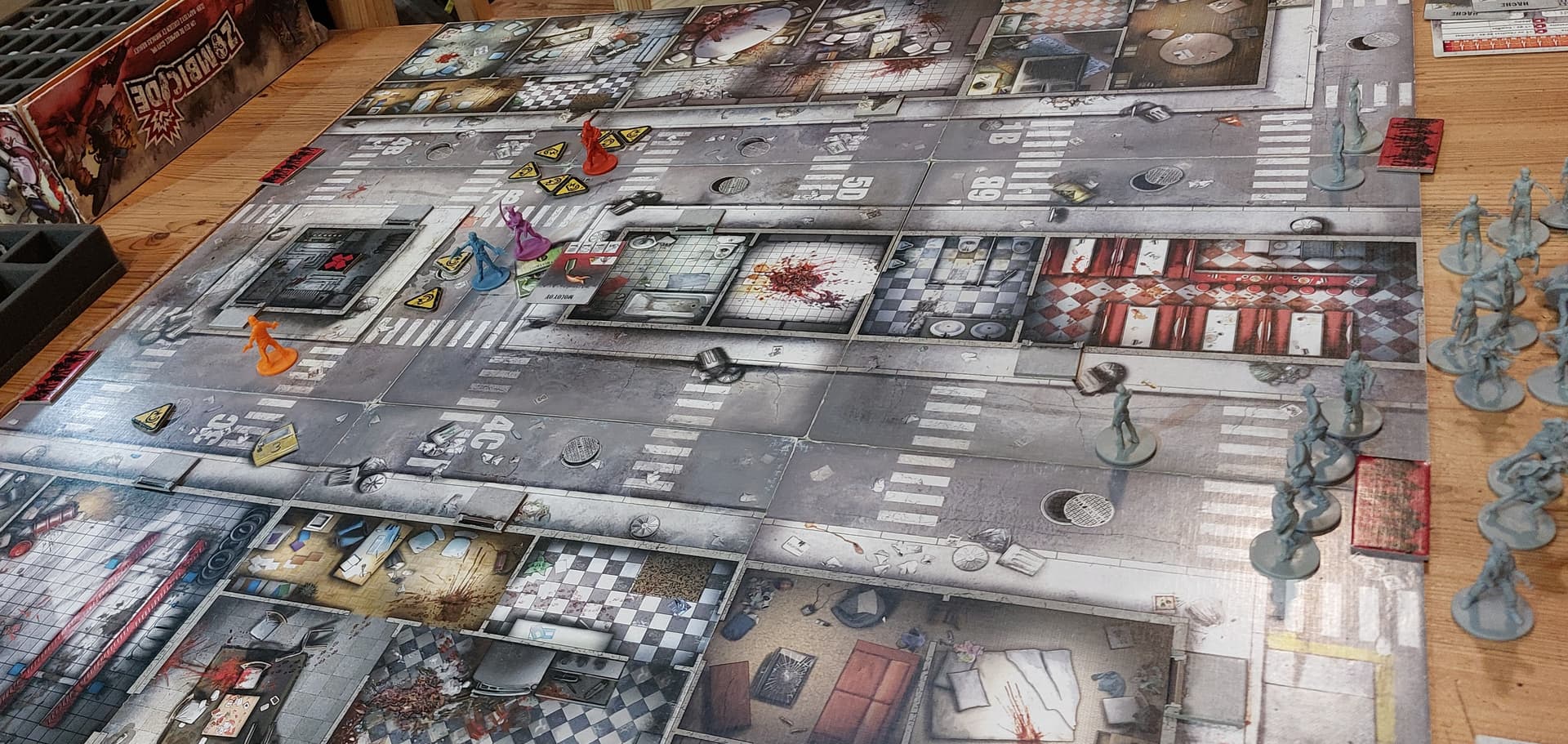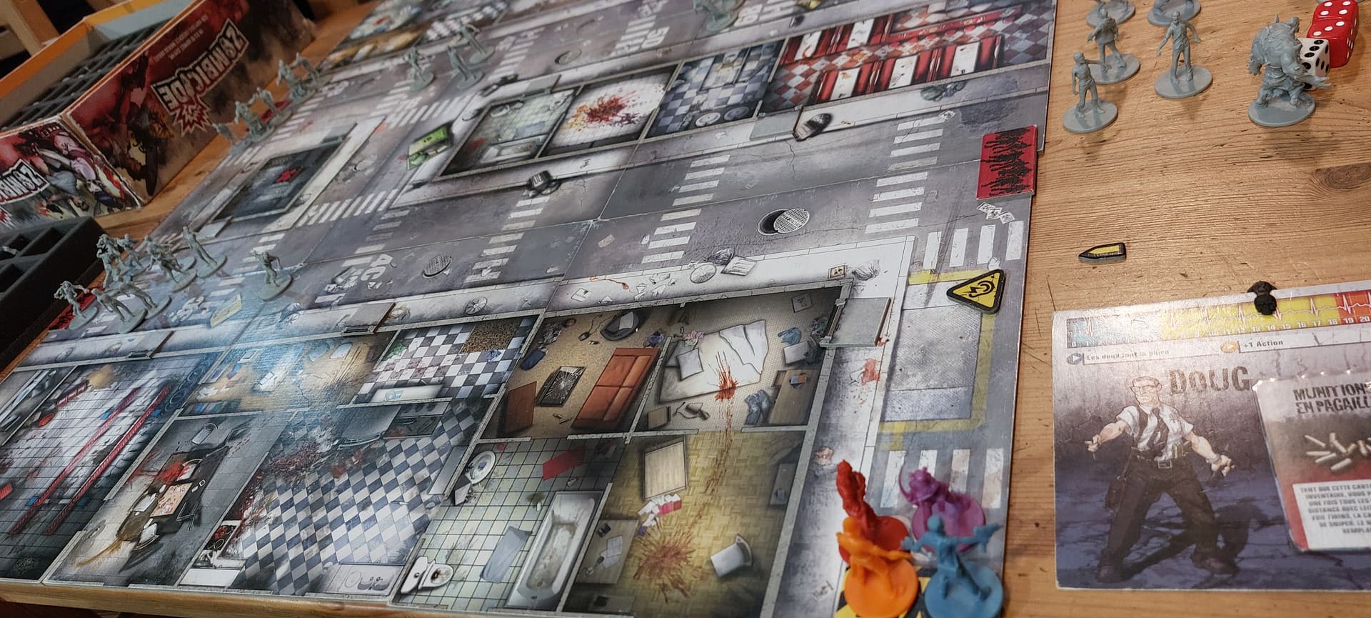 Zombicide : partie découverte pour Krrro jr (9 ans) qui me tanait depuis de longs mois pour y jouer… L’Abomination s’est ramassé un cocktail molotov, on a bien fait le ménage à coup de fusil à pompes, de carabine et de fusil mitrailleur après quelques frayeurs et une blessure pour Amy (qui s’est retrouvé nez à nez avec un zombie alors qu’elle fouillait en quête d’objets utiles)…