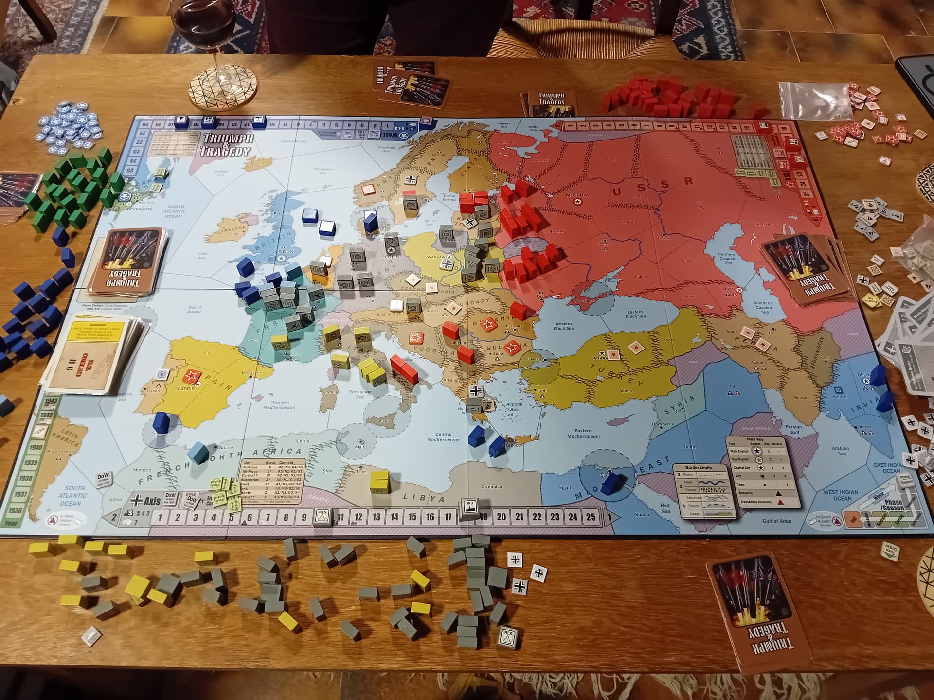 Je découvre le jeu, je tâtonne pas mal avec les anglo-saxons, mais le réduit parisien tient et la victoire se conclut dans Berlin avec le russe, qui à lâchement profité de ma percée dans la Rhur pour me déclarer la guerre et me lamine