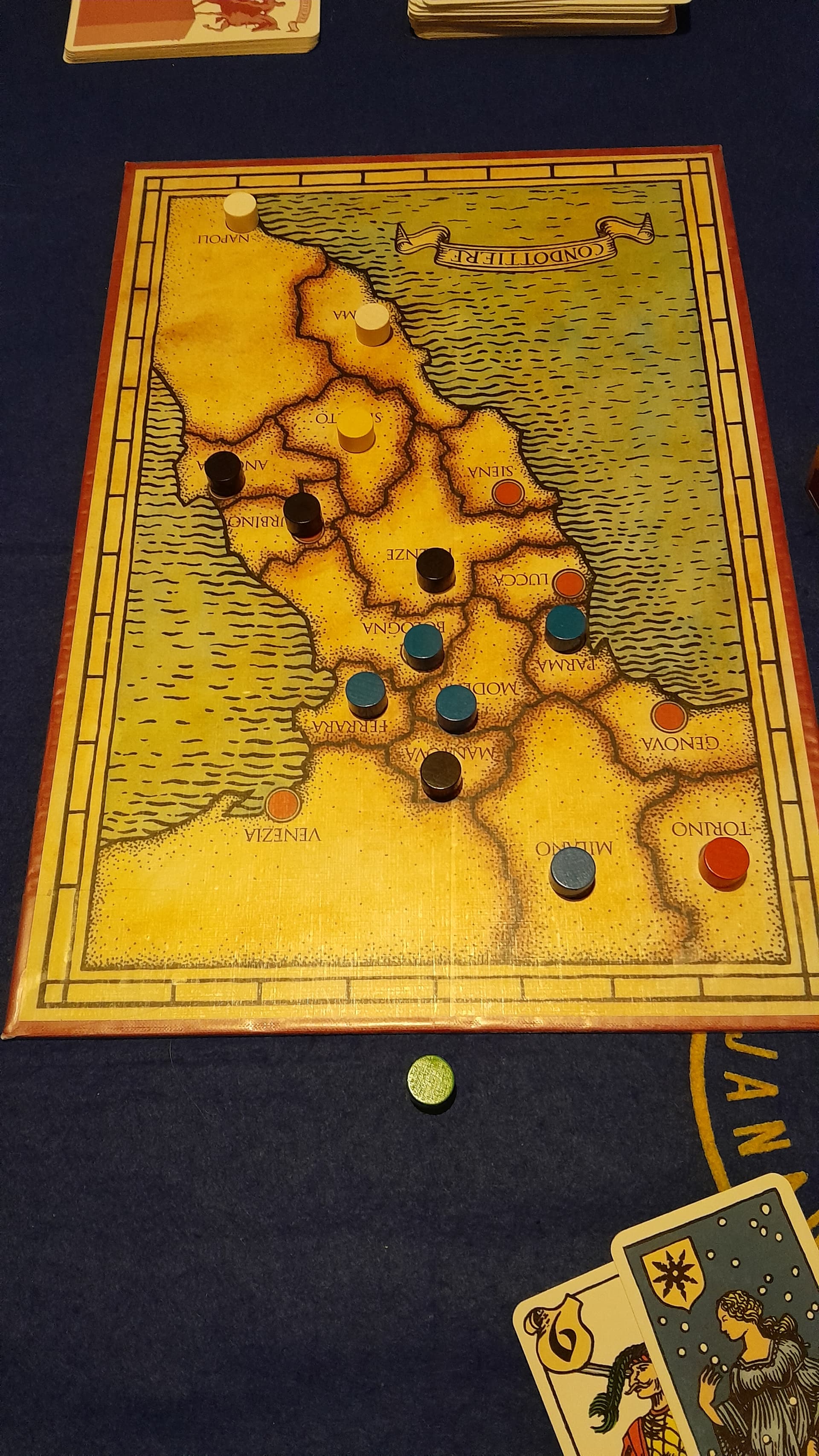 (& on garde de très bons souvenirs avec les papiers !) Quant à CONDOTTIERE je pense que c’est la toute première version, chez Eurogames, bien trop grande pour le vide qu’il y a à l’intérieur de la boîte, c’est sûr. Mais puisque tu en parles …