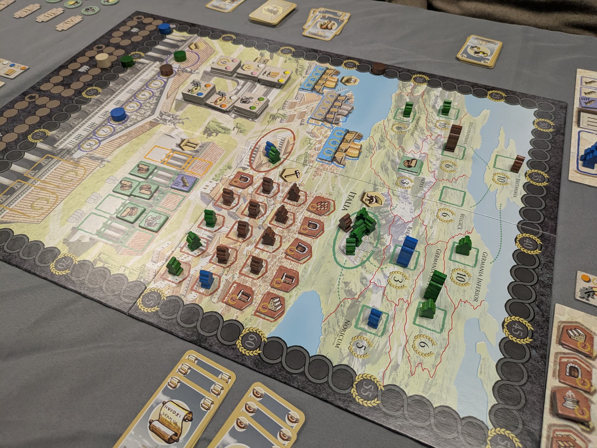 Heureusement pour moi, Targui me permettra de prendre ma revanche. Ressortie d’un grand ancien auquel je n’avais plus joué depuis … au moins ça ! A tel point que je voulais placer mes pions autour du plateau et non sur les cartes en bordure. Mais bon, ça revient vite et de belles collections m’offrent la revanche ![]()