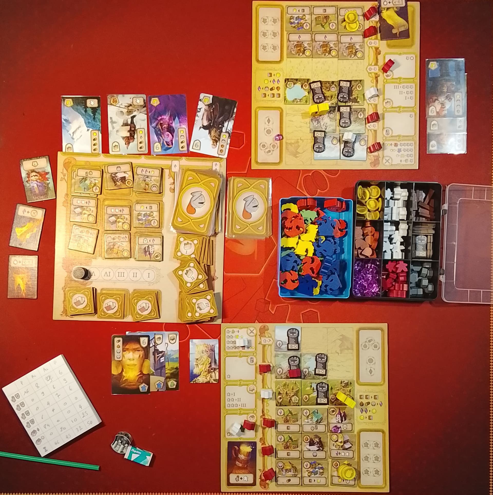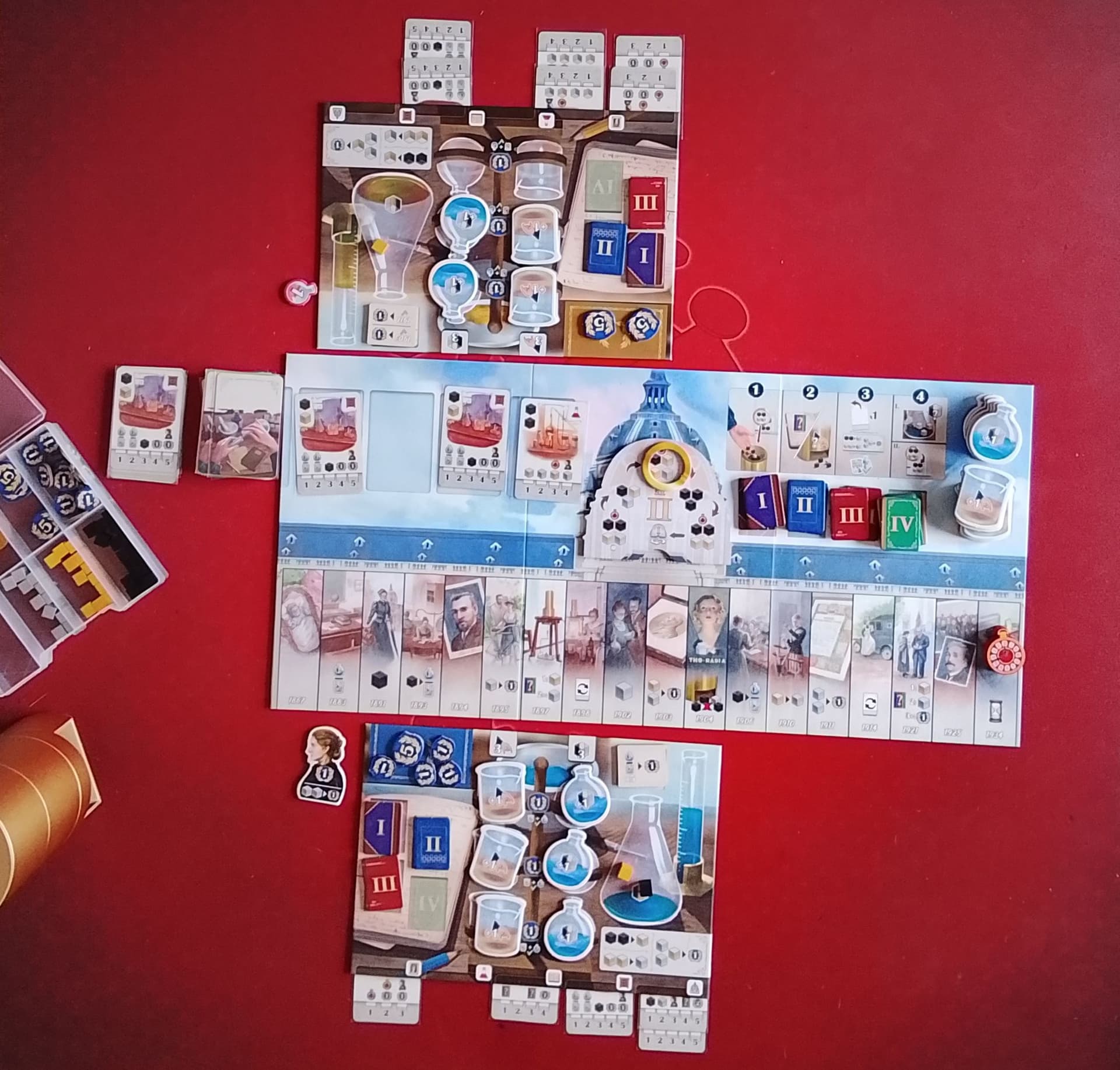 Les règles ne sont pas si compliquées en fait (quand on compare à un On Mars de Lacerda j’entends ) : mais on passe la partie à se pourrir mutuellement, ce qui rend chaque point compliqué à obtenir, et des phases de décisions hésitantes qui allongent la partie - surtout les Votes avec des tractations infinies à qui obtient le vote de l’autre