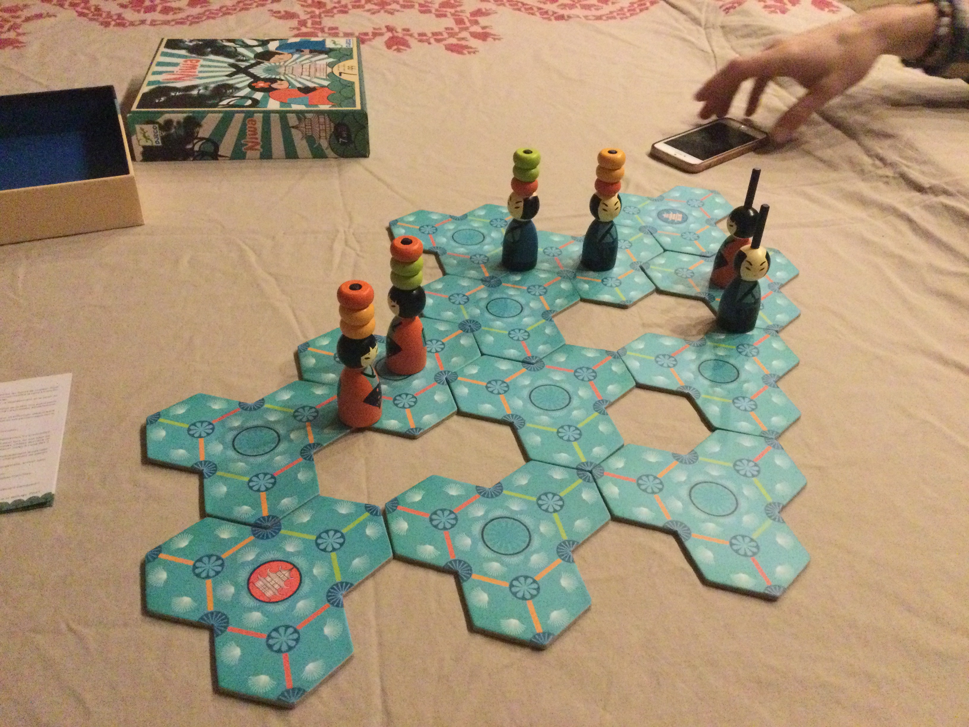 la partie démarre à 22h … et se finira à 6h30 : 8h30 de jeu à 5 joueurs, fin au 7ème round par un joueur qui marque 3 points d’un coup