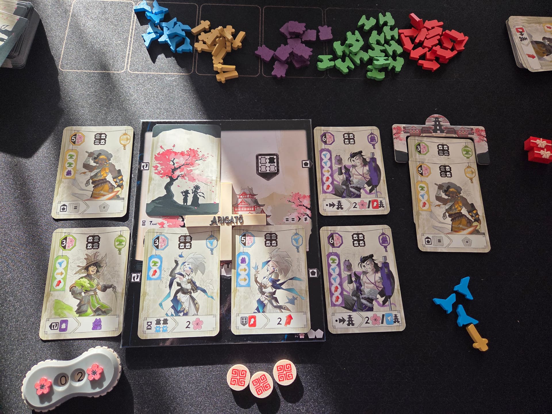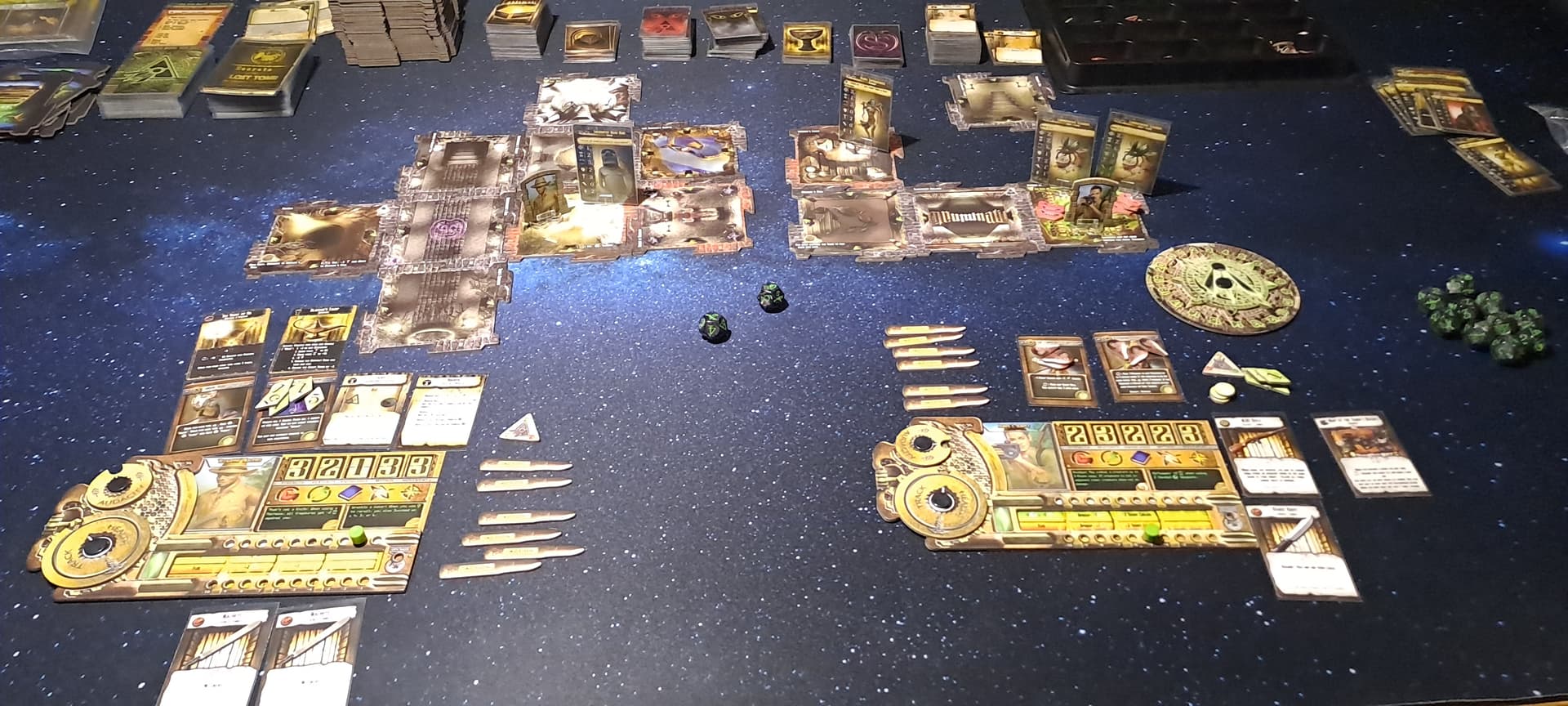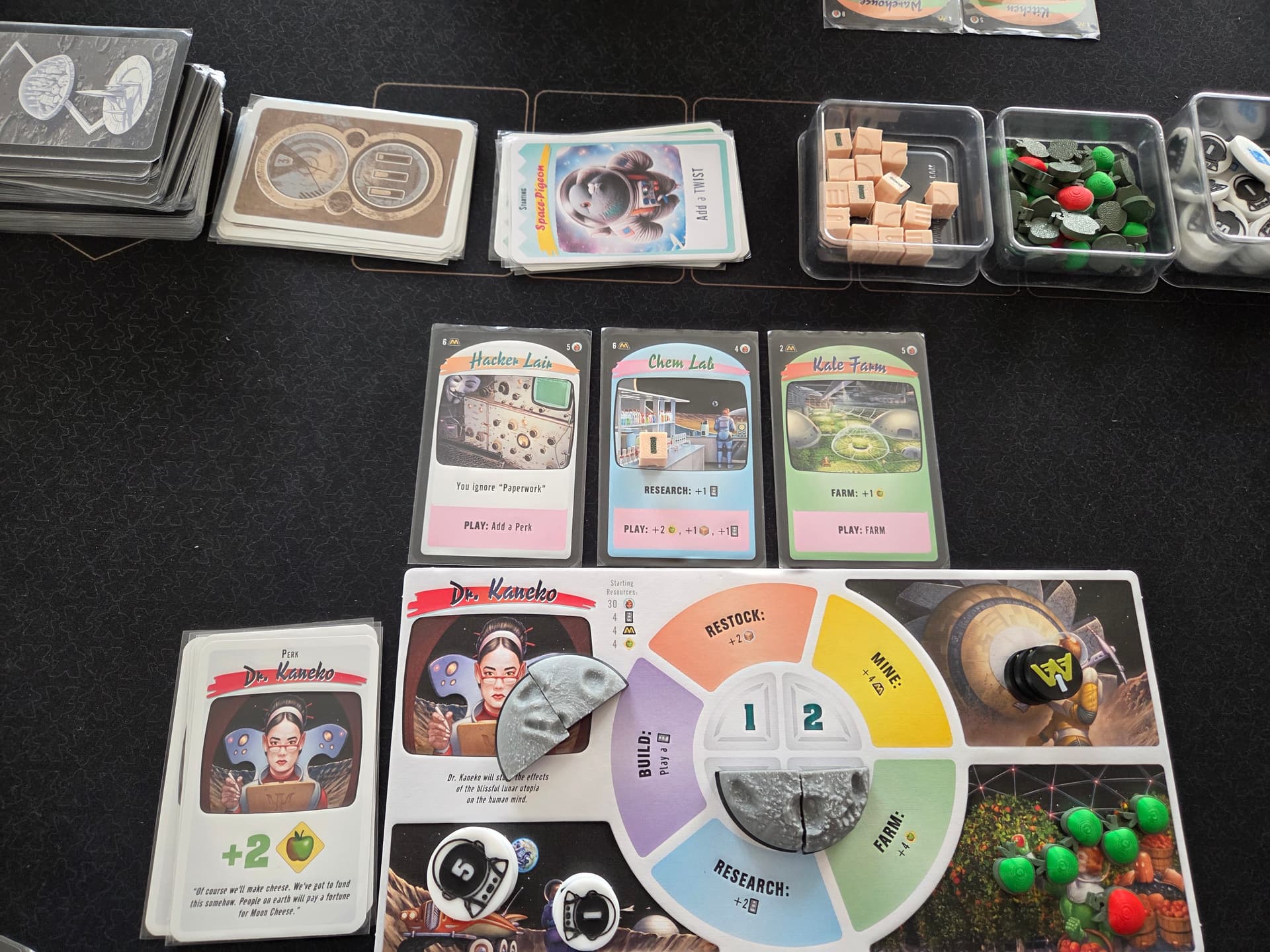 Bon, je vous délivre de ce suspens insoutenable : j’ai gagné avec pas loin de 30 points d’avance. Le petit plateau d’objectifs spécial 2 joueurs à fait des merveilles sur ma grosse production mais n’a pas avantagé mon adversaire qui a construit en masse…