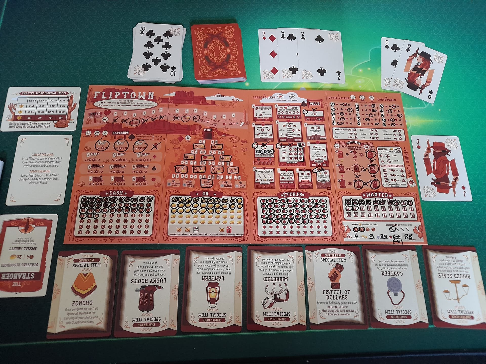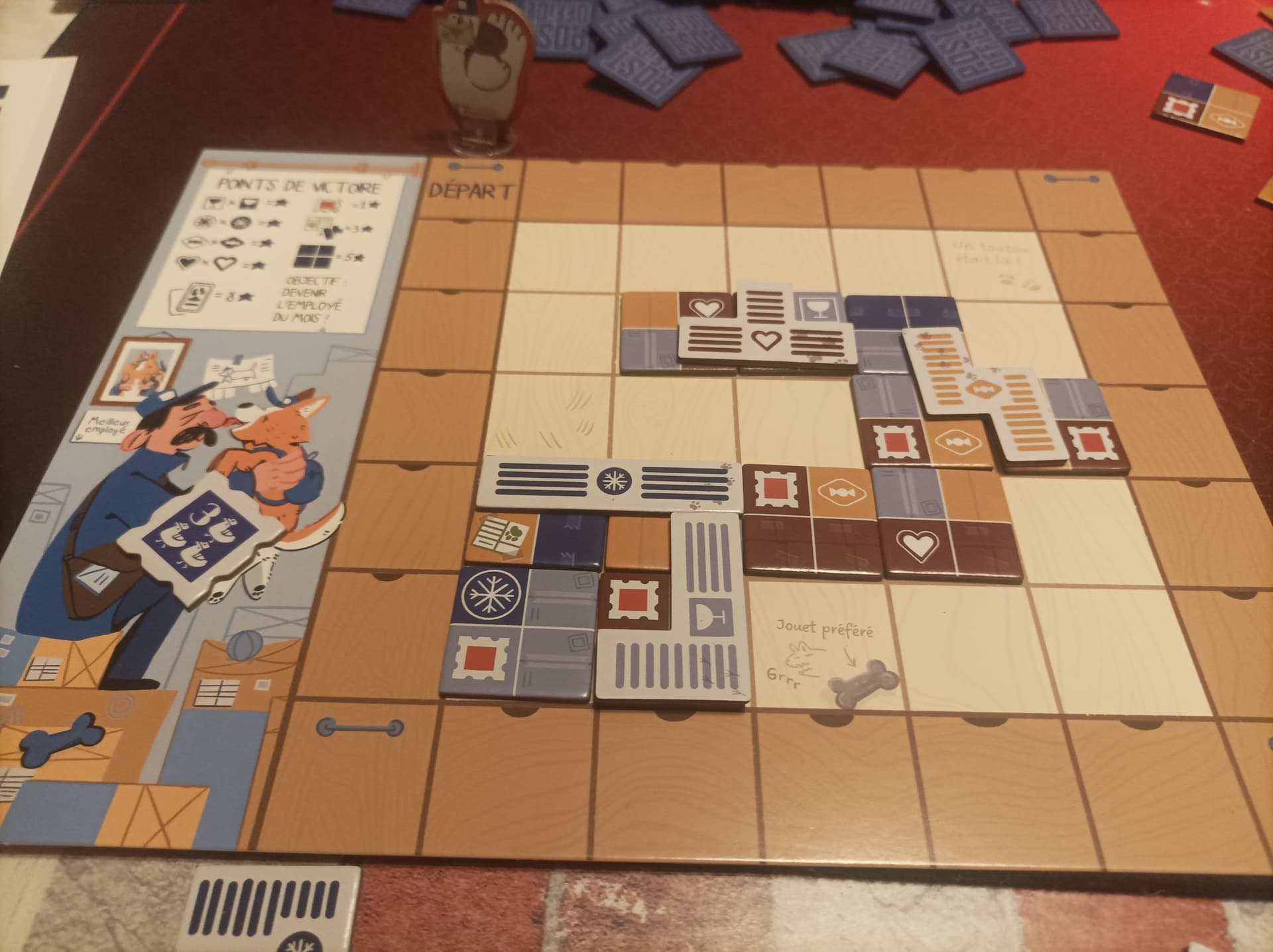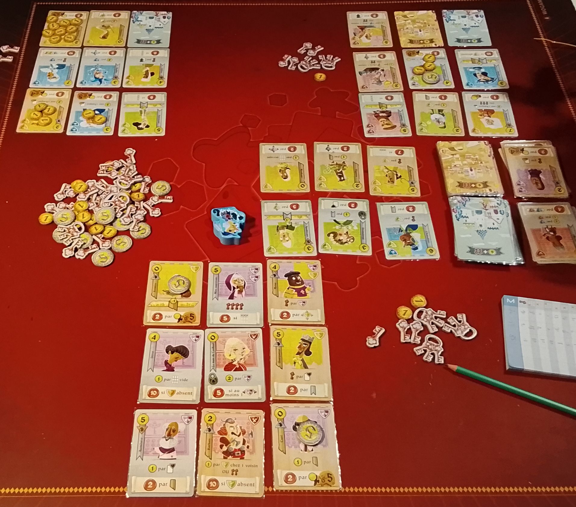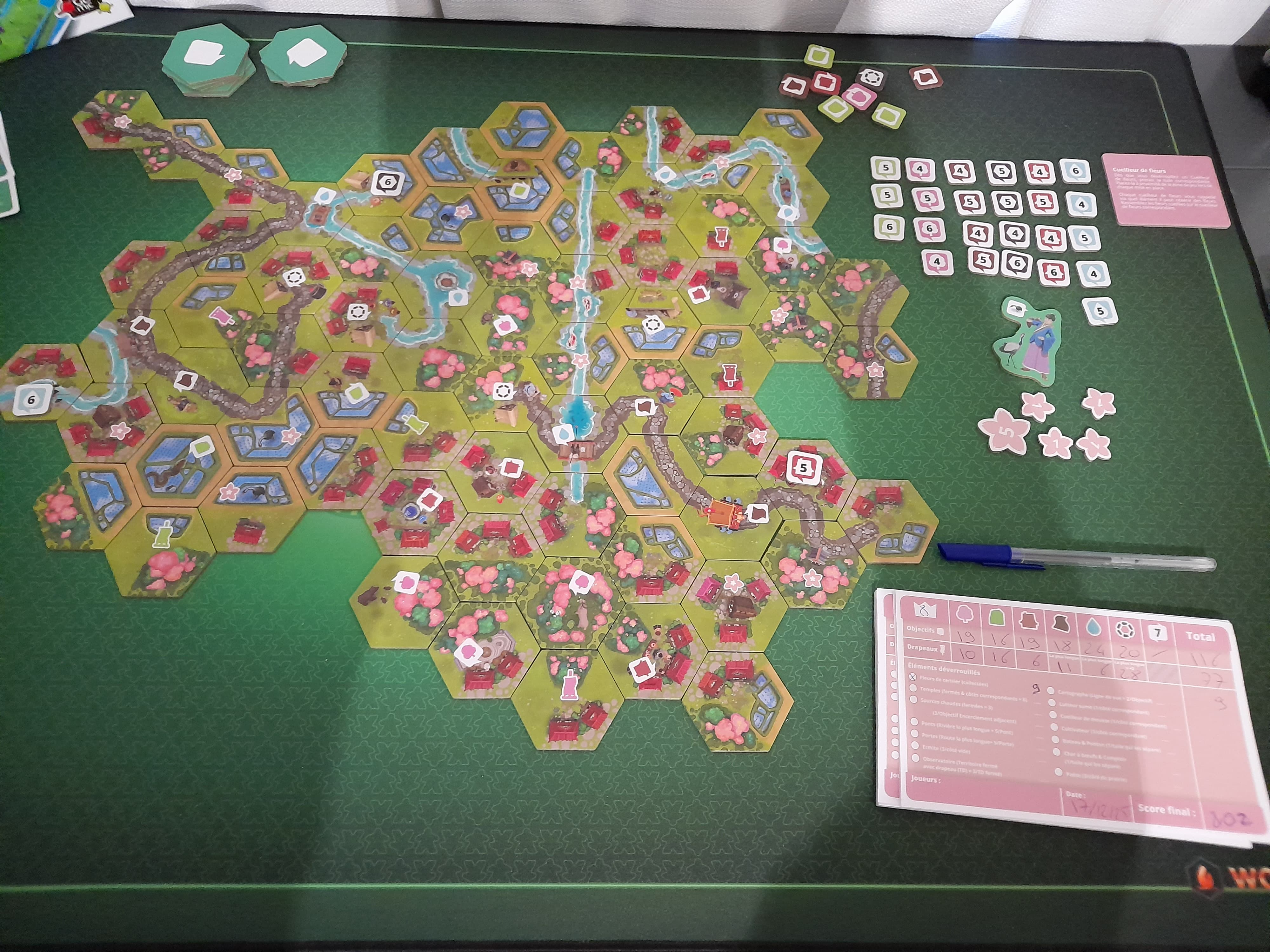 Partie sous haute tension : malgré La reine qui lui permet de récolter trente points j’arrive à dépasser d’un point le score de ma femme.