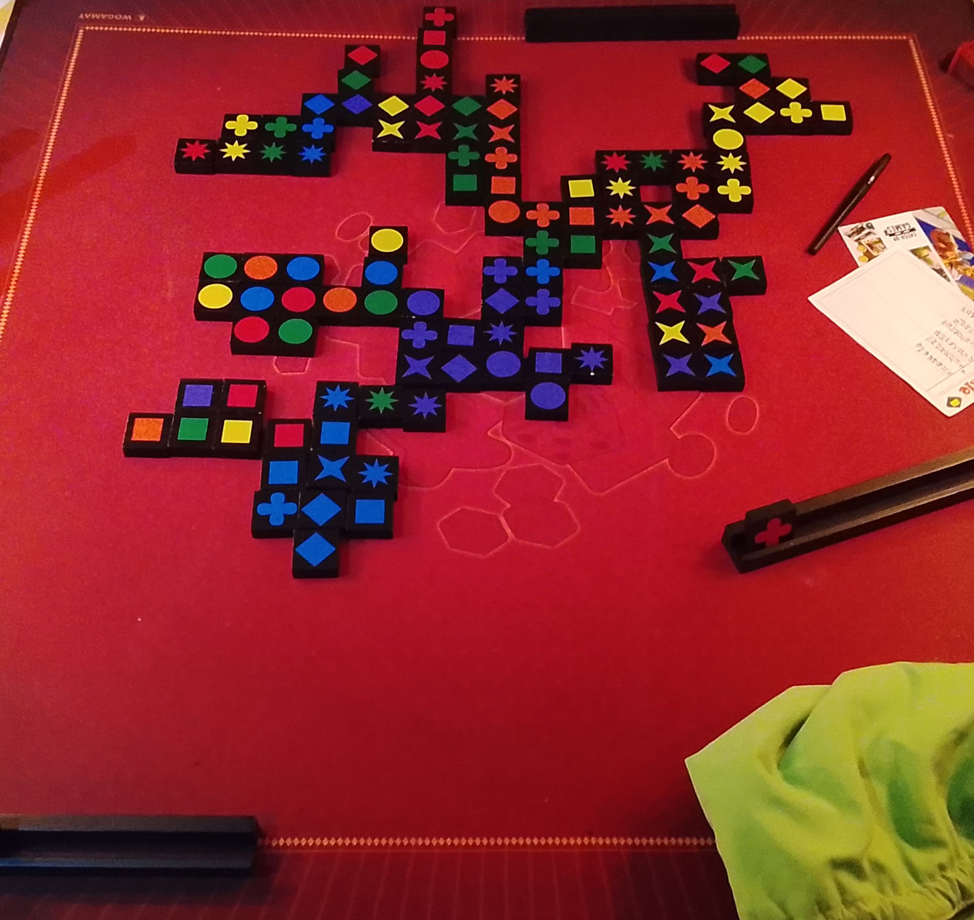 pas facile de différencier les tuiles violettes et bleues à la lumière des chandelles (panne de courant dans le village)