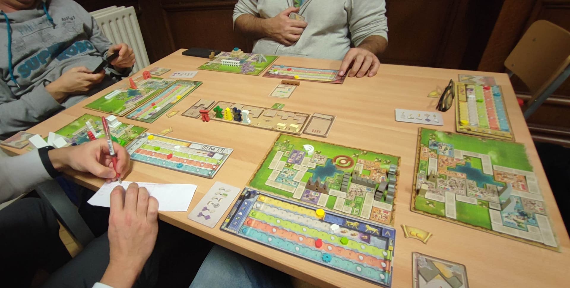Châteaux de Bourgogne : j’ai dû m’habituer à cette version avec des tuiles en acrylique (j’ai l’original Alea) ; ma seule victoire du weekend :