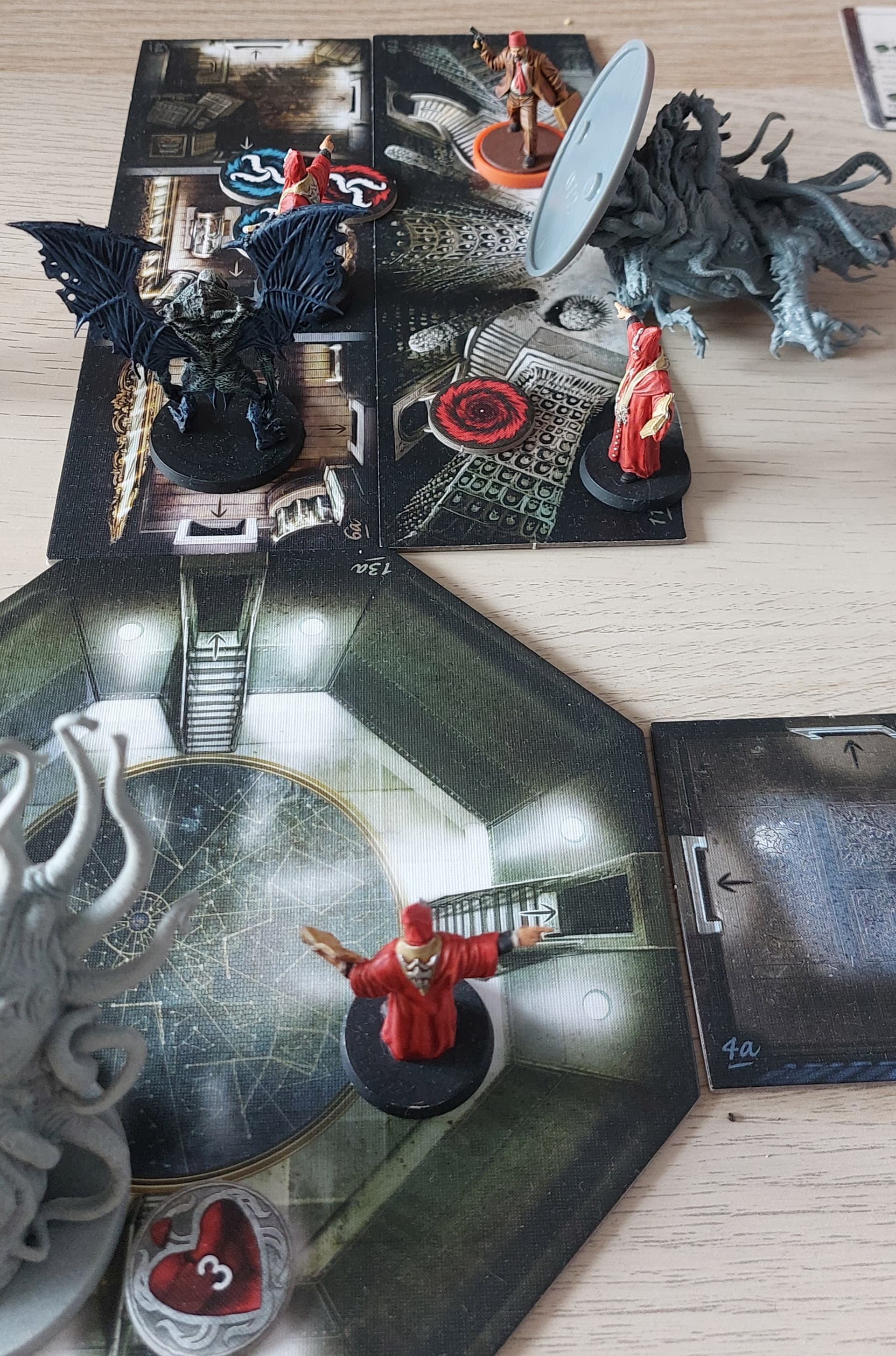 Cthulhu Death May Die : après avoir jouer à cache cache avec les gardiens du musée pour récupérer les artefacts dans leur dos tout en sombrant de plus en plus dans la folie à force de rencontrer des cultistes tarés, des gens bizarres et des créatures monstrueuses, la Borden qui souffrait de TOC de Krrro jr (en plus de sa psychopathie) et mon Ahmed codépendant (et collant) font sa fête à Yog Sottoth… Va falloir que je finisse la peinture des disciples d’Hastur qu’on puisse un peu varier les plaisirs côté Grands Anciens, mais on continue à prendre notre pied sur ce chouette jeu !