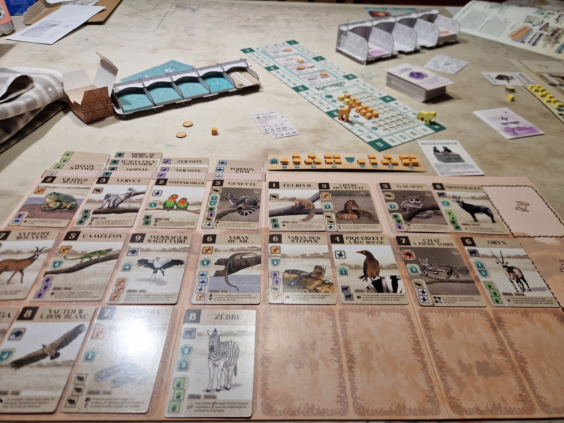 Un Kavango en 1 vs 1. Un jeu très beau, facile à jouer, mais où le tirage des objectifs de manche peut, semble-t-il, donner un avantage certain à l’un des joueurs.