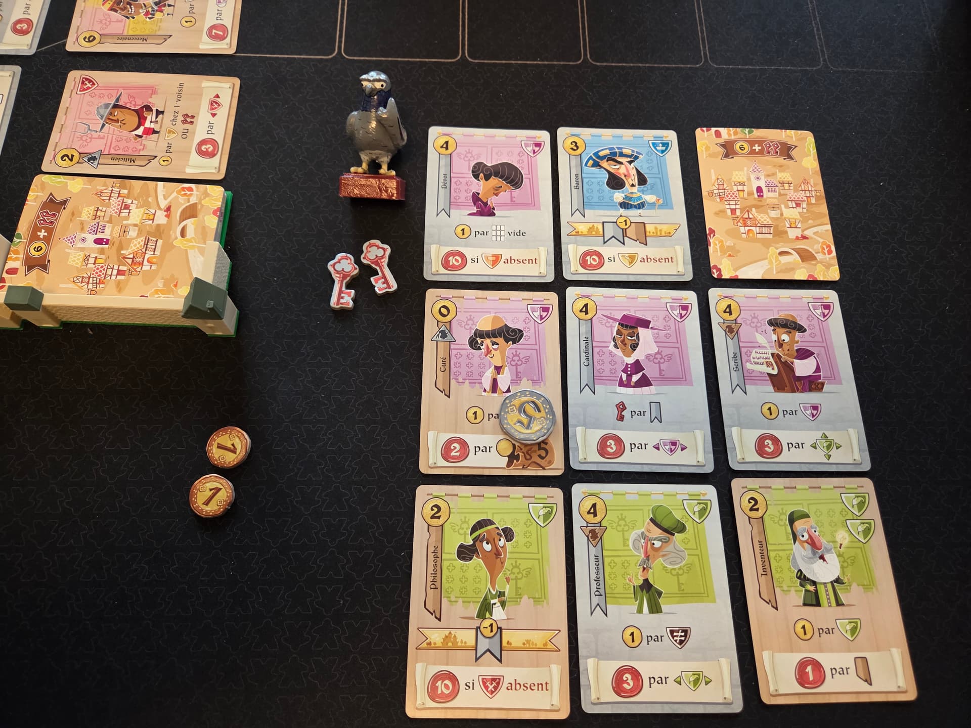 tu as 4 lieux : un endroit ou tu peux gagner des sorts (sorte d’objectifs)/ de la thune ou des commis (jeton d’action en +)