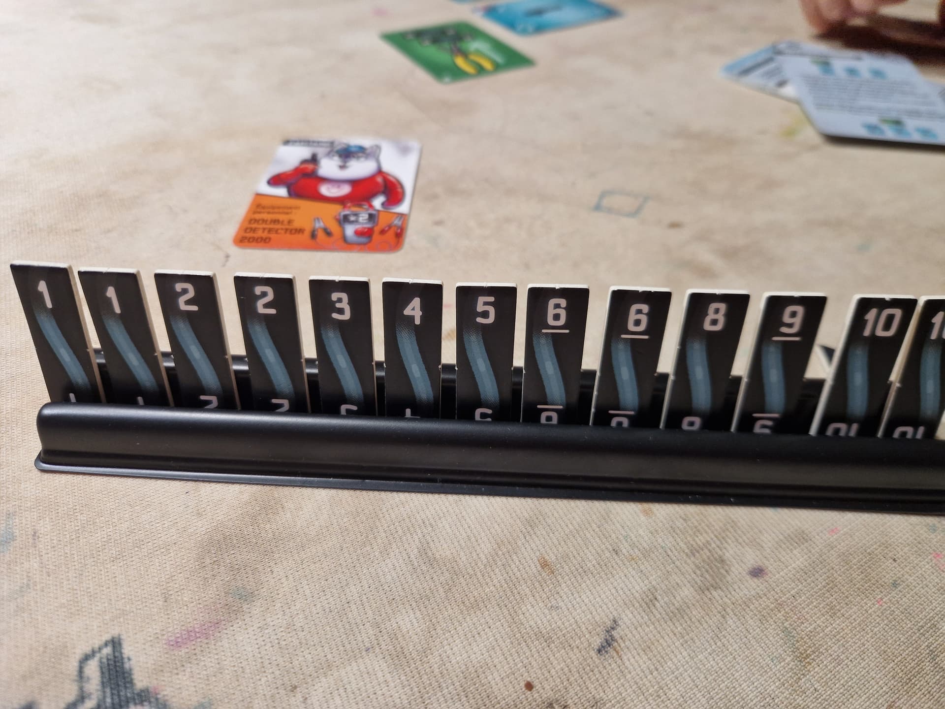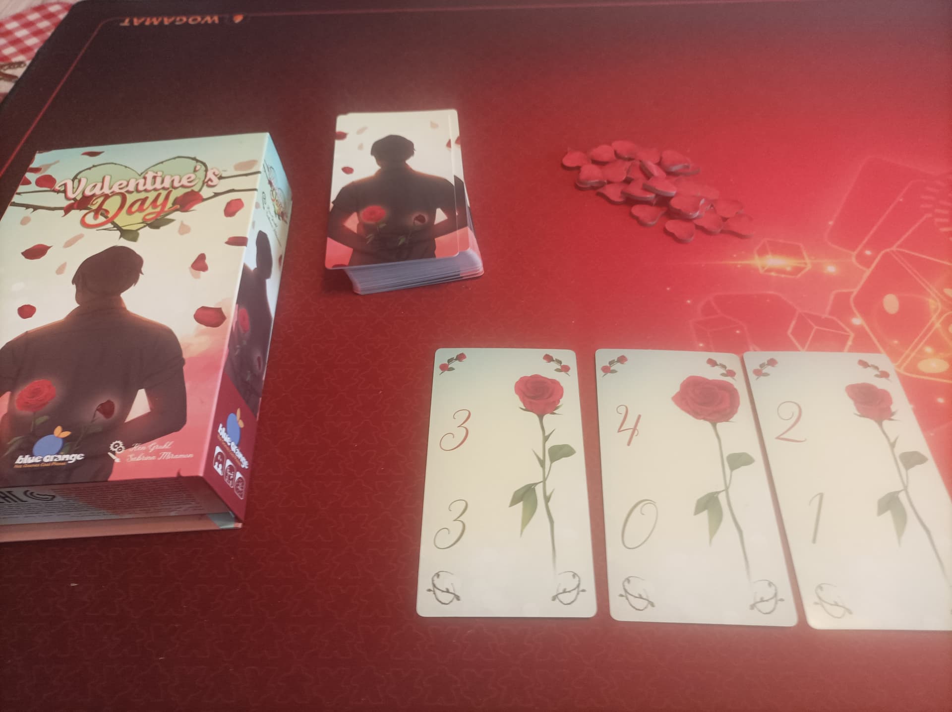 Mes enfants partis, j’enchaîne avec mes 5 copains du jour sur un petit jeu de plis joyeusement foutraque Moustache. Les cartes sont rigolotes avec des animaux à moustache (Dommage j’ai oublié de prendre une photo) Les équipes changent à chacunes des 4 manches, et chacune de ces manches ajoutent une règle. Personnellement, j’ai trouvé que ça manquait de maîtrise jusqu’aux jetons de score tirés au hasard entre les membres de l’équipe gagnante… Bof !