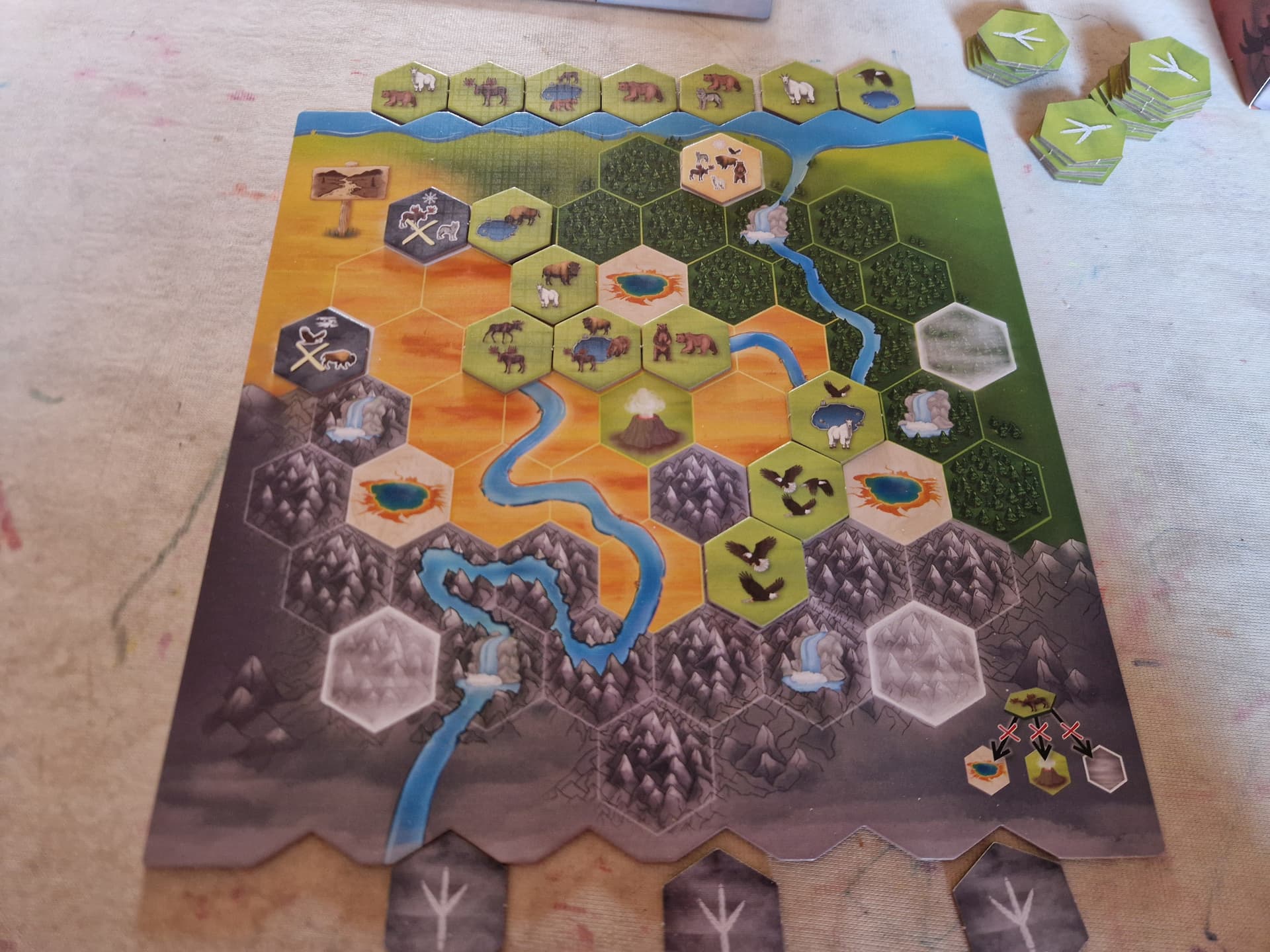 …la limite du jeu est ta connaissance des tuiles : une fois que tu te rappelles des tuiles avec 2 ou 3 animaux différents ça aide beaucoup pour le placement et on approche vite le score max. Si tu satures rapidement les cascades tu pourras de plus placer une tuile où tu veux à chaque tour…