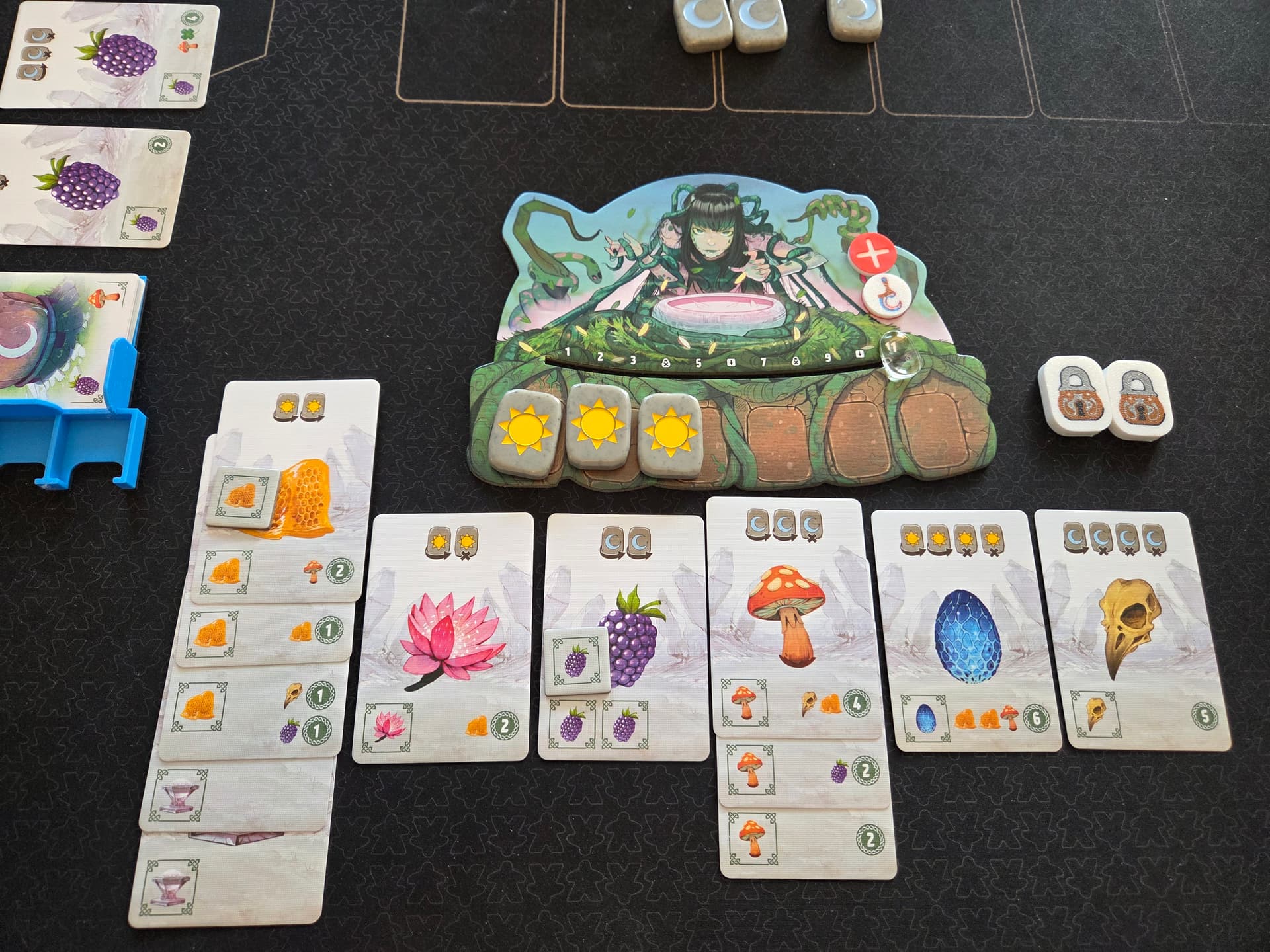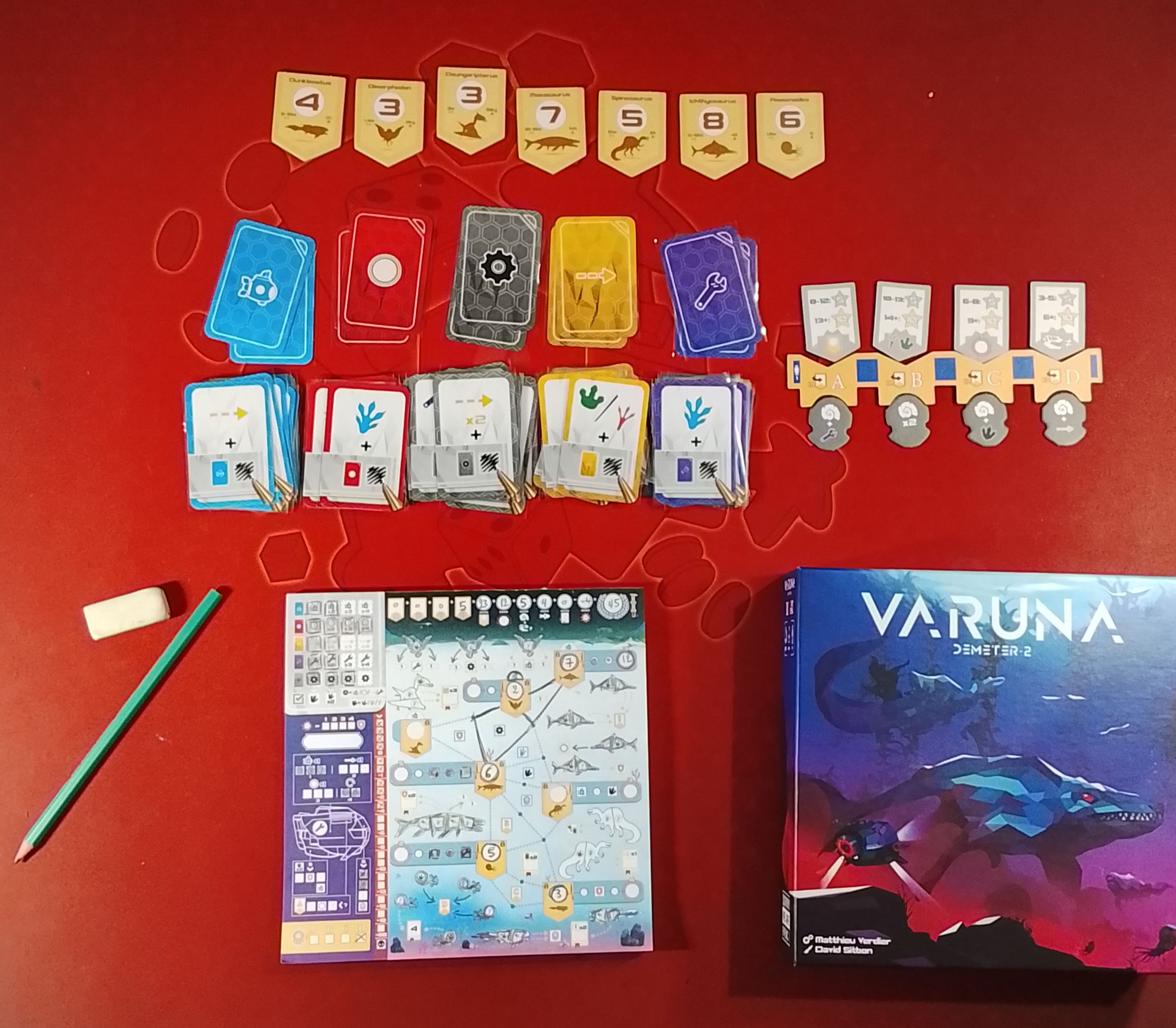 Partie solo de découverte : un flip and write assez complexe avec beaucoup de choix stratégiques différents.