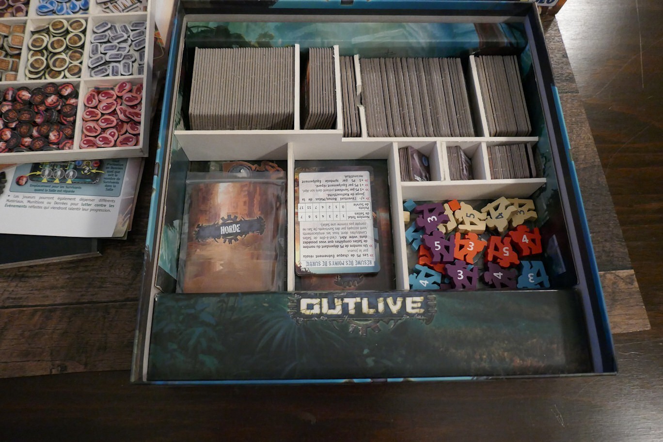 Vendu avec un rangement fait maison en carton d’encadrement pour tout classer dans la boite.
