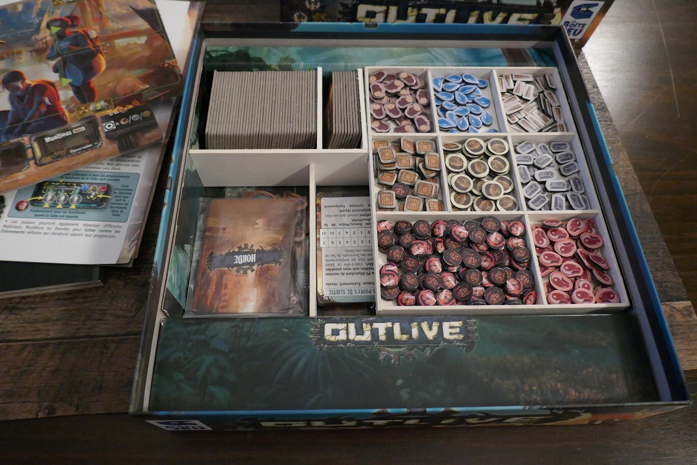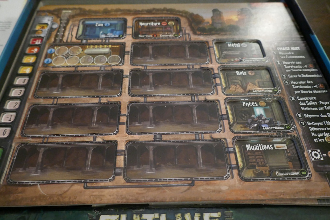 (coins de la boite un peu blanchis mais matériel impeccable, cartes “savoir-faire” et “aménagements mineurs” comme neuves jamais jouées)