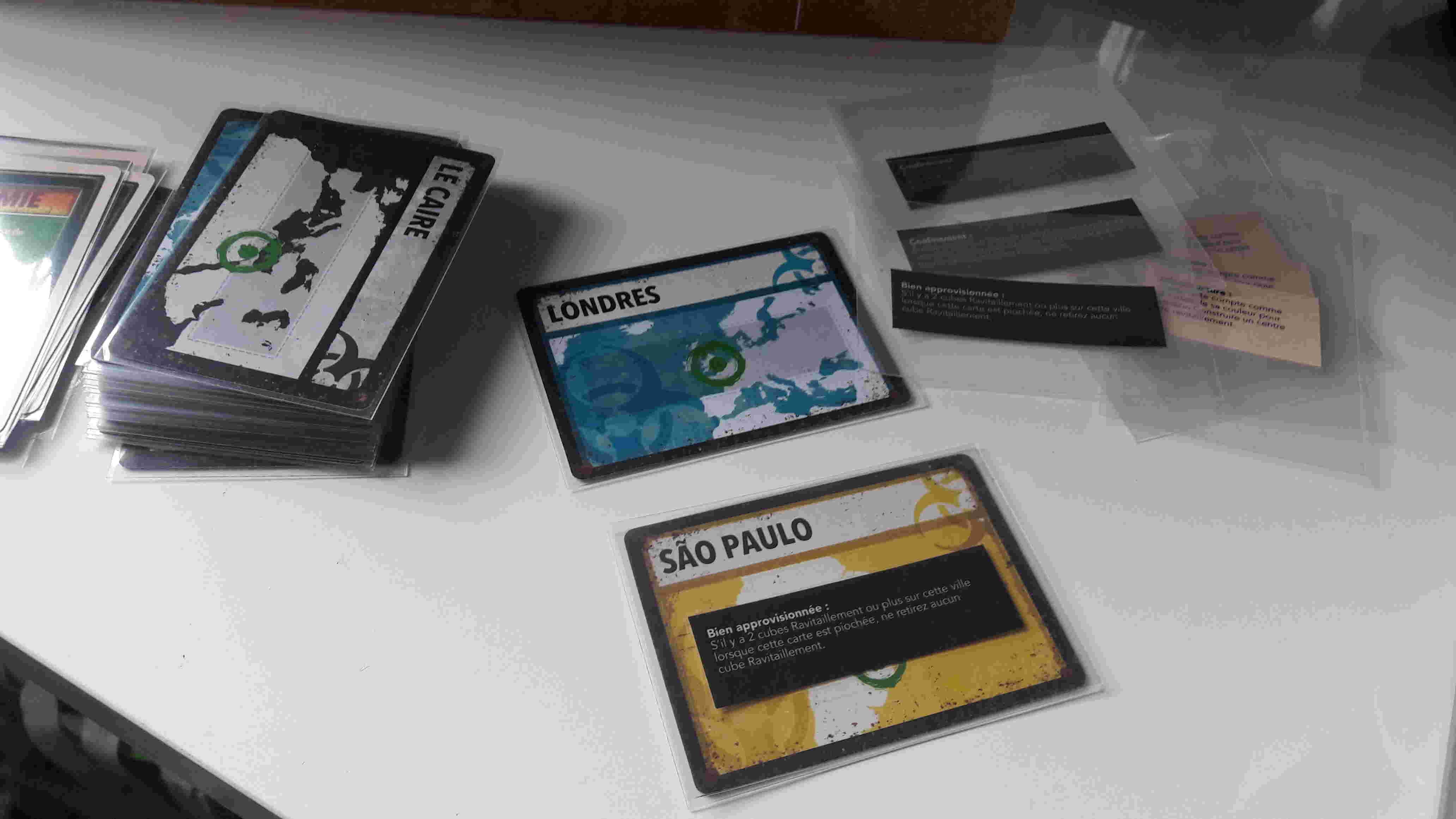 Toutes les cartes du jeu sont sleevées, et chaque amélioration de carte dispose de son propre sleeve pour pouvoir les interchanger.