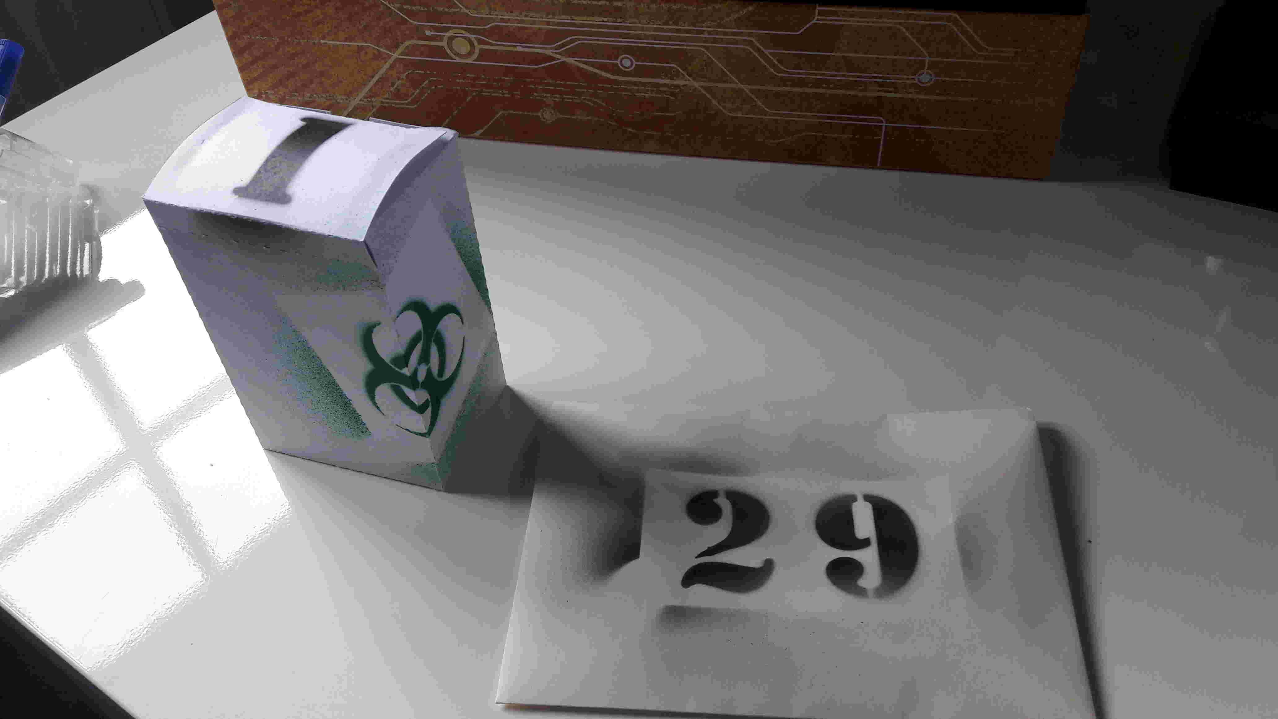 J’ai aménagé la boite avec du carton plume afin de ranger tous les éléments, et je fournis une petite notice de fonctionnement pour les choses à faire au départ et pour la remise à zéro.