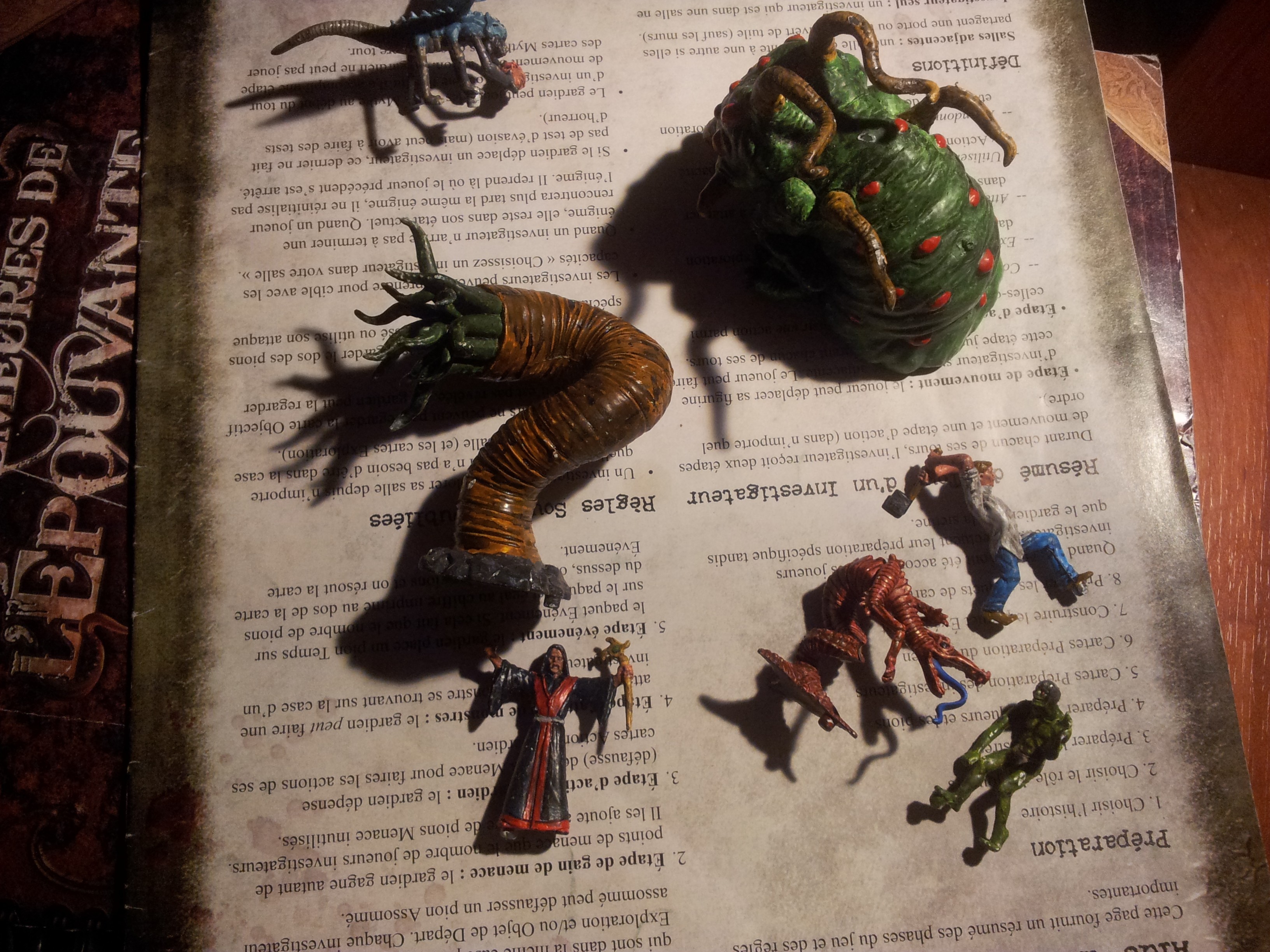 Le jeu est la première édition des demeures de l’épouvante. Le jeu est d’occasion, il a pas mal servi. Je ne suis pas un pro de la peinture, je tiens à le signaler, mais bon ça à l’air pas mal.