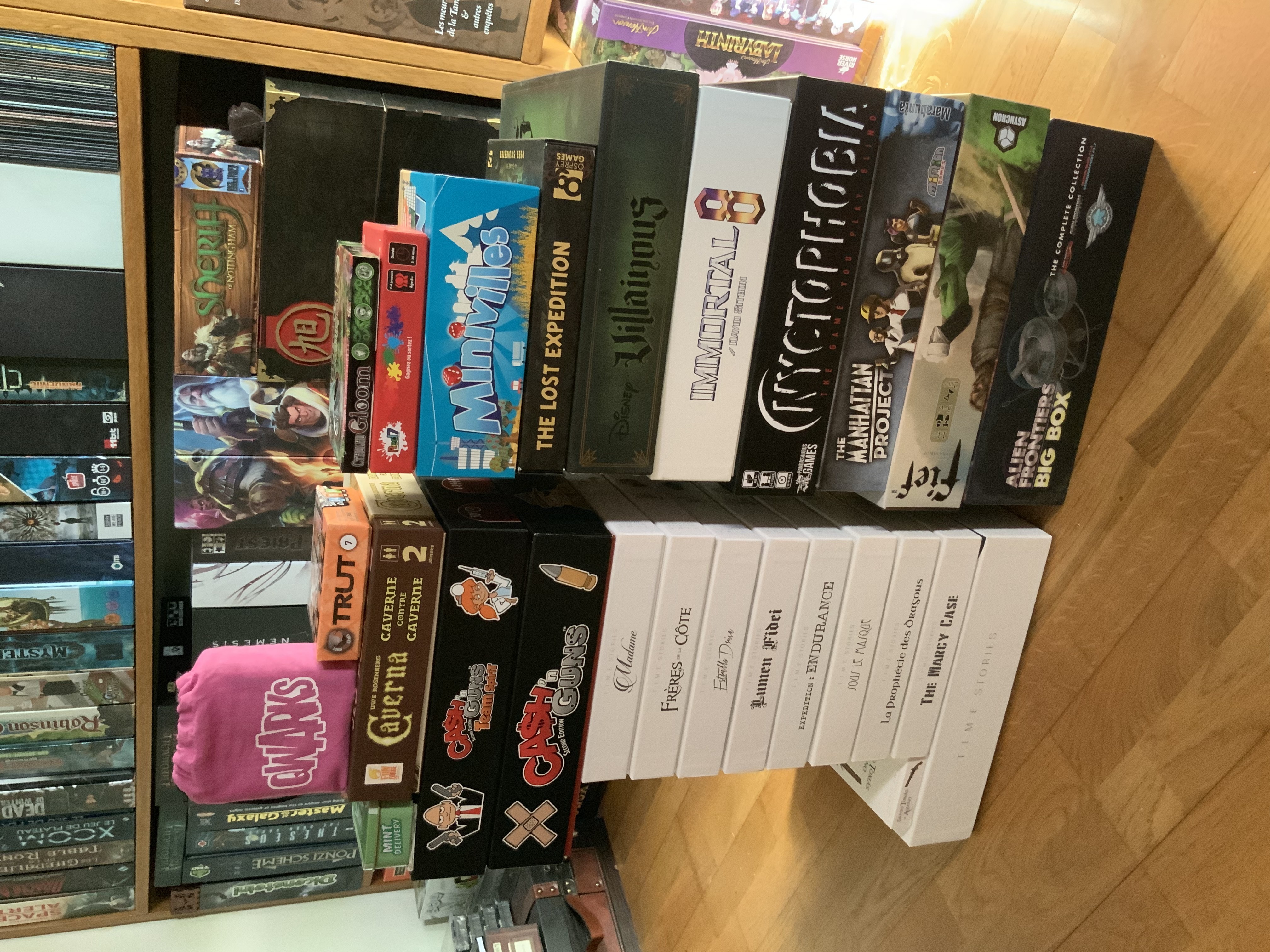 - Intégrale Time Stories (VF, jouée une fois): jeu de base, les 8 scénarios sortis, le scénario bonus (Frères de la Côte) et les pions custom acryliques