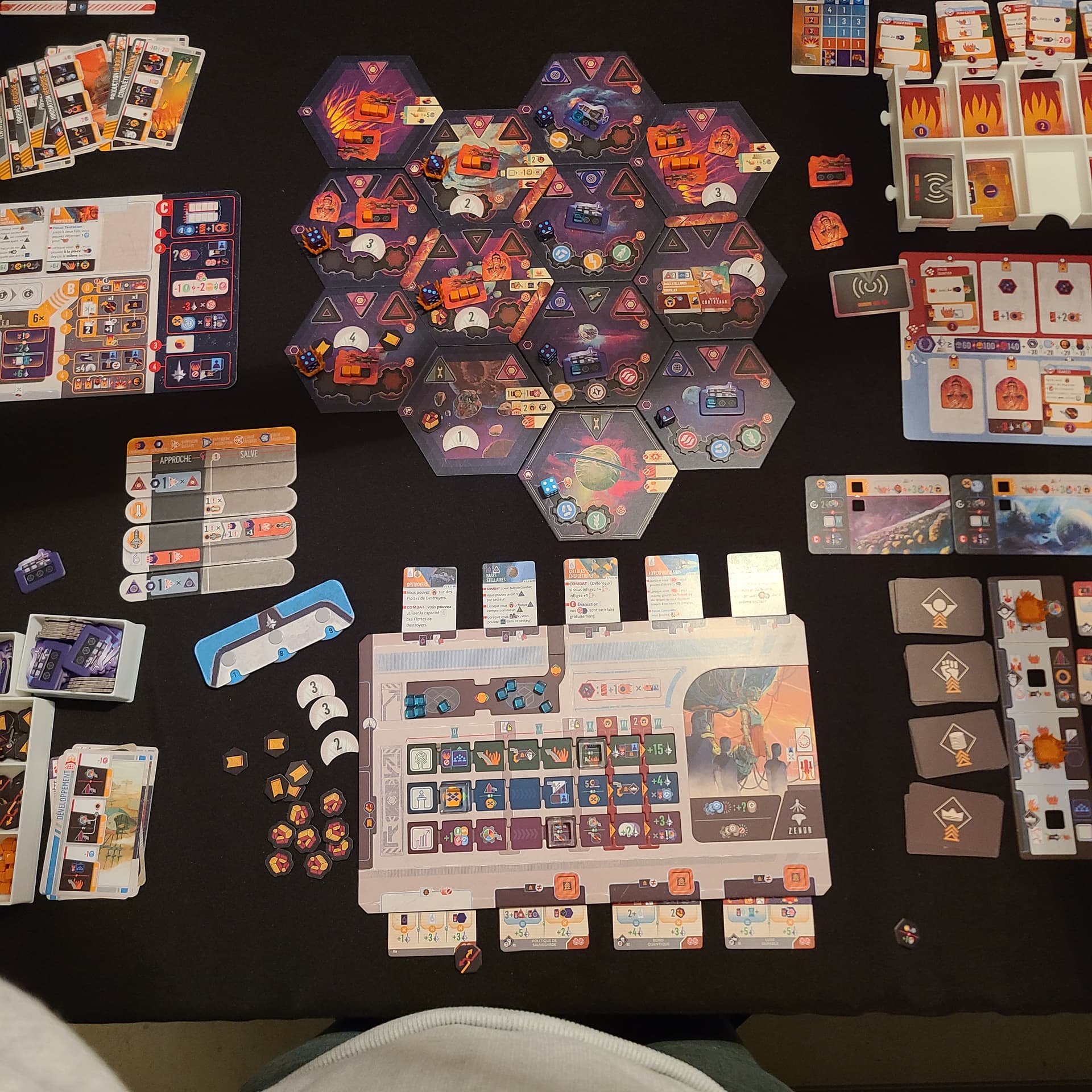 J’étais plutôt content de ma partie même si un évènement m’a bien plombé à l’ère 2 rajoutant deux gardiens (donc 20 points pour le Néant et 5 nouveaux cubes, rendant les failles quasi imprenables avec 4 et 5 cubes).