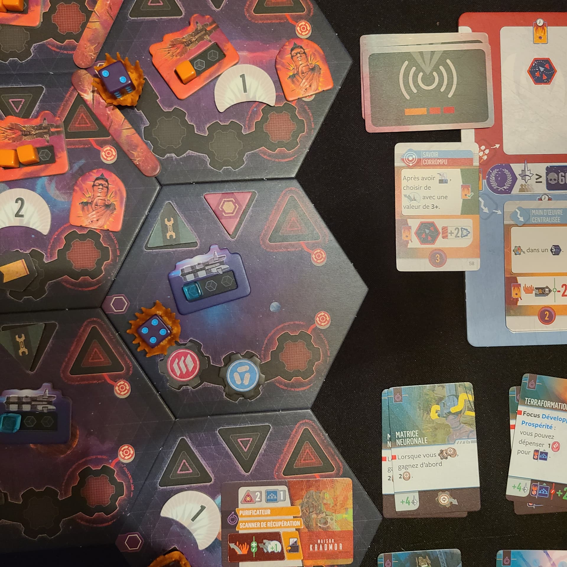 Le jeu nous oblige à préparer des stratégies et des combos, réalisables quelques tours plus tard, pour soit se débarrasser des cartes crises, prévoir le scoring des cartes programmes qui rapportent, encaisser des coûts, préparer ses invasions et celles du Néant…