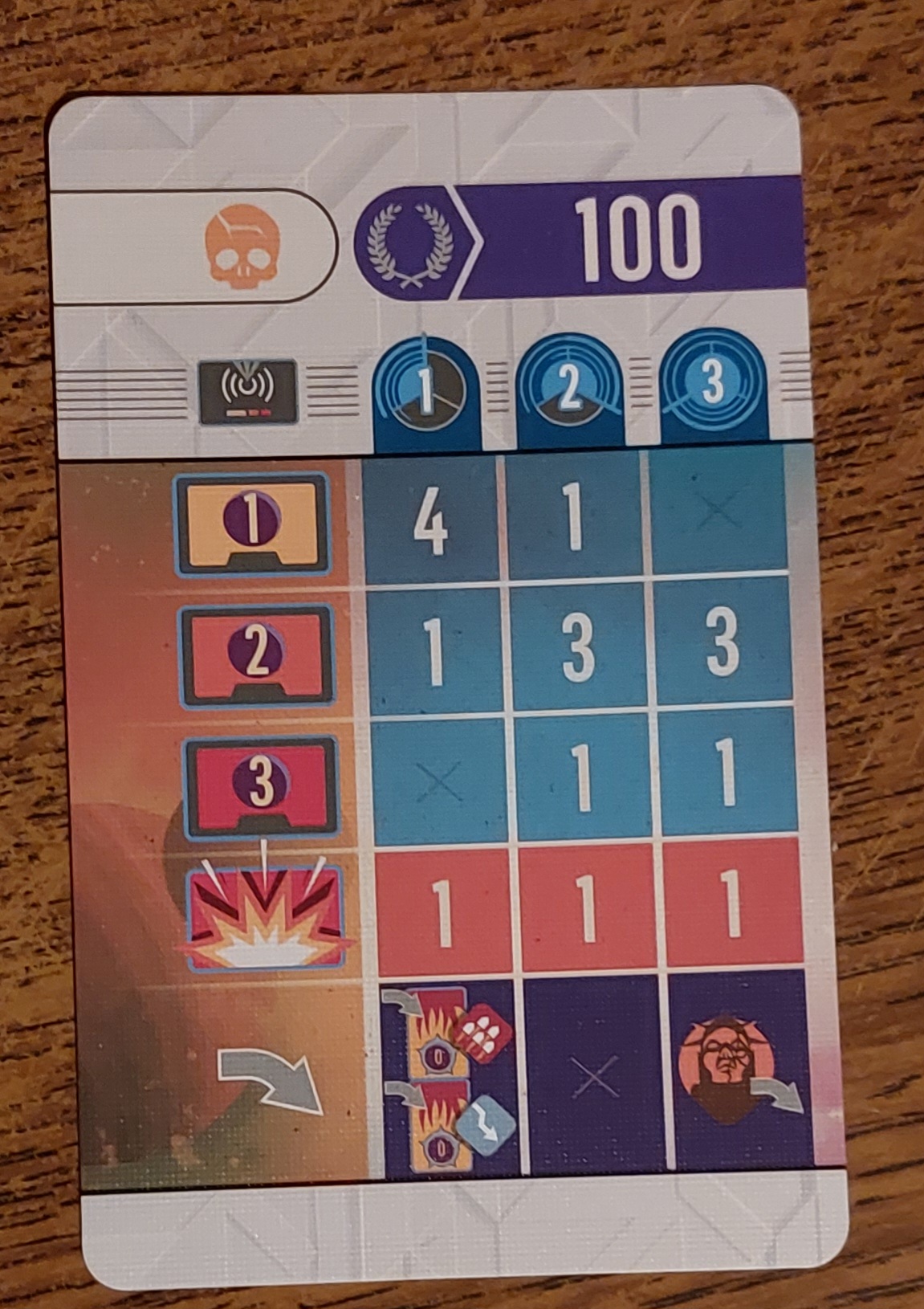Pour le premier point, j’ai effectivement tourné, à la première manche, la seule carte Alerte de niveau 2 du premier cycle et… je l’ai gardée tout au long des 5 manches. J’étais tellement dans mes explications que je n’ai pas retourné de nouvelles Alertes à chaque manche.