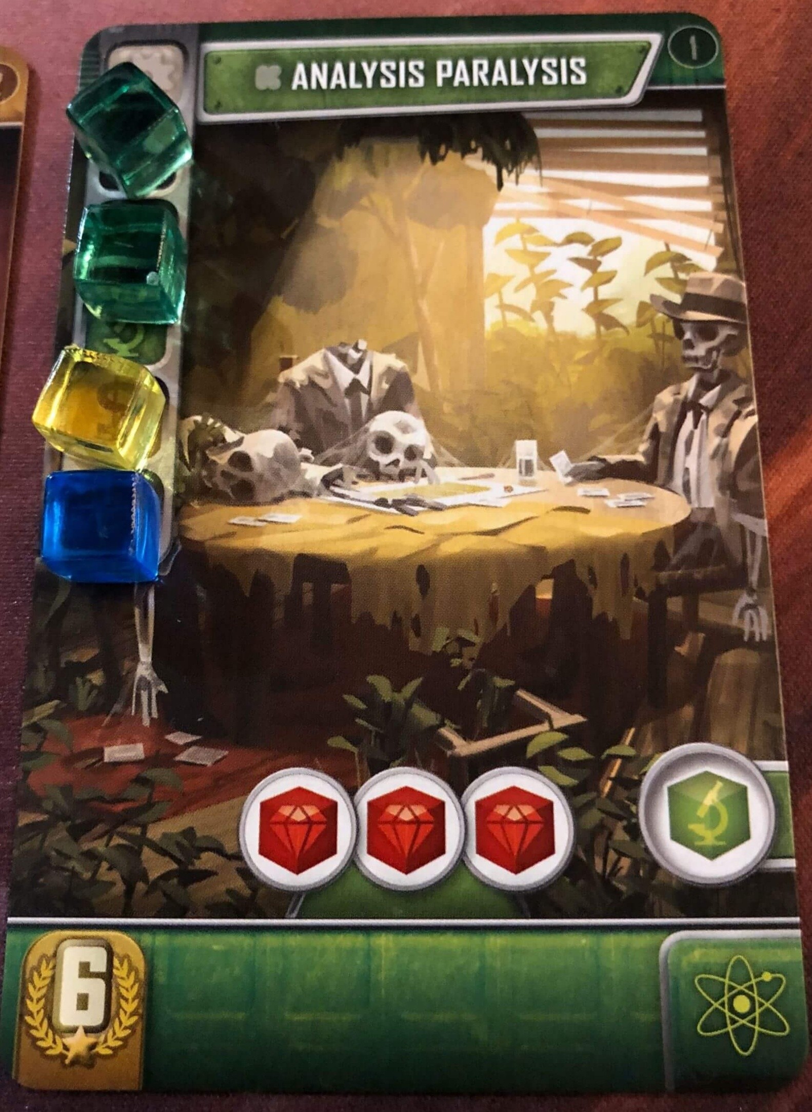 Je ne pourrais pas répondre non plus en ne citant pas Troyes, un jeu plus exigeant que les deux précédents, donc auquel nous jouons moins souvent (encore que, les années passant, nous y jouons maintenant plus souvent que Ra the dice game), mais dont chaque partie nous apporte un crépitement inimitable dans nos petites cellules grises, un plaisir à chaque fois renouvelé et chaque anticipation de partie me fait faire des petits bonds de joie. D’ailleurs là, j’ai trop envie d’y jouer rien que d’en parler. Celui-là aussi, j’y jouerai pendant des années encore, à n’en pas douter, et je suis sûre que des joueurs qui le découvriront dans plusieurs années ne le trouveront pas daté.