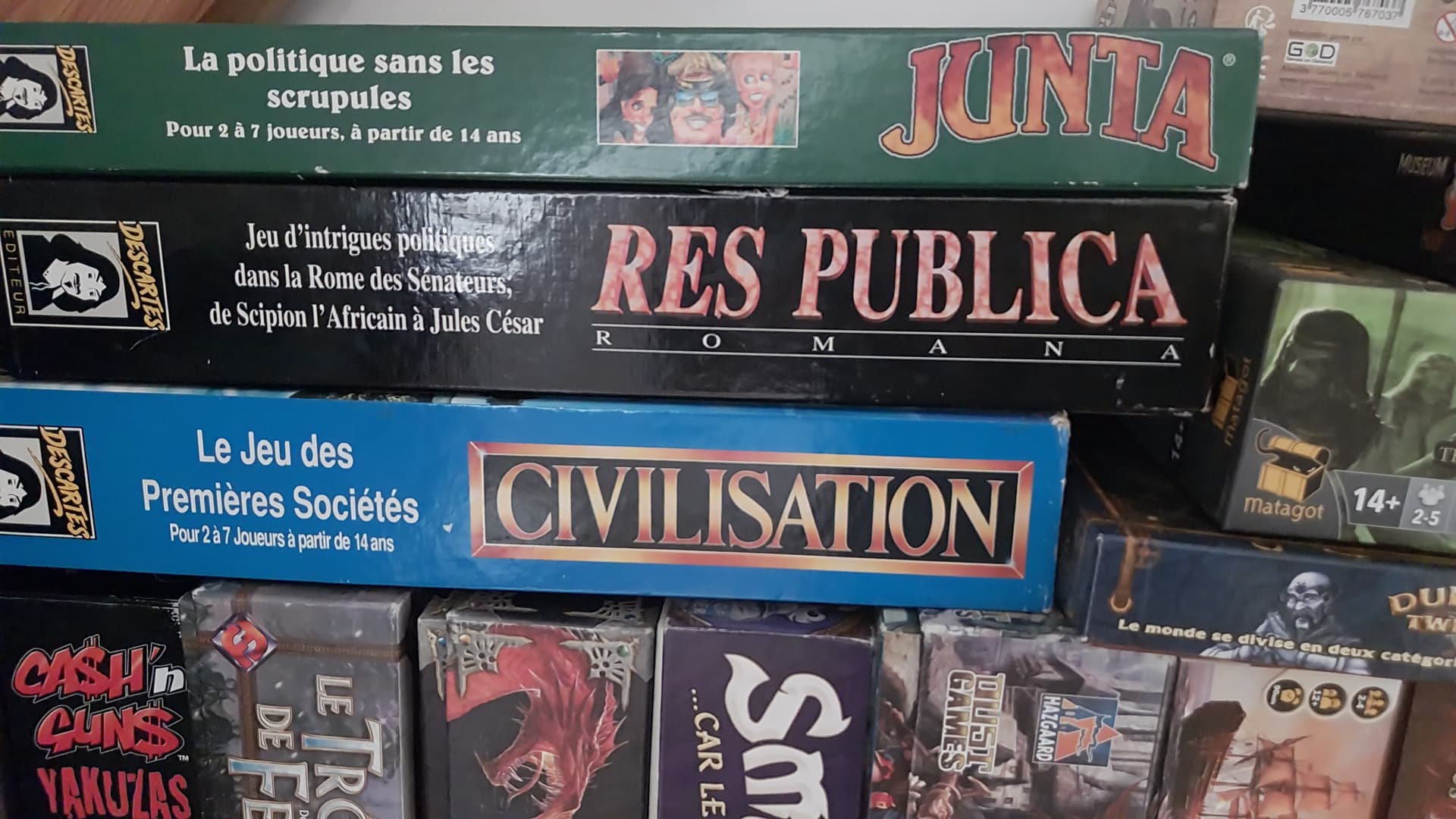 Je garderai toujours mes 3 premiers jeux, d’une époque où je pouvais en acheter un par an: Civilisation, Res Publica Romana et l’âge de la renaissance. D’ailleurs il me manquait Dampfross, que j’ai fini par acheter cette année en souvenir de cette belle boite restée sur les rayonnages.