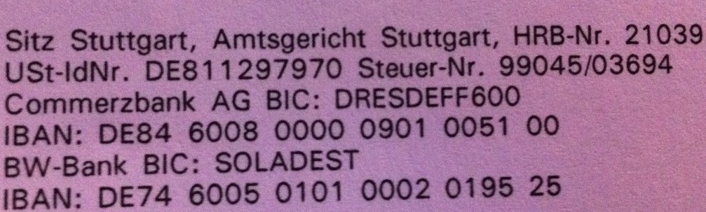 /!\ Ne pas oublier de mentionner le numéro de la facture (Rechnung)
