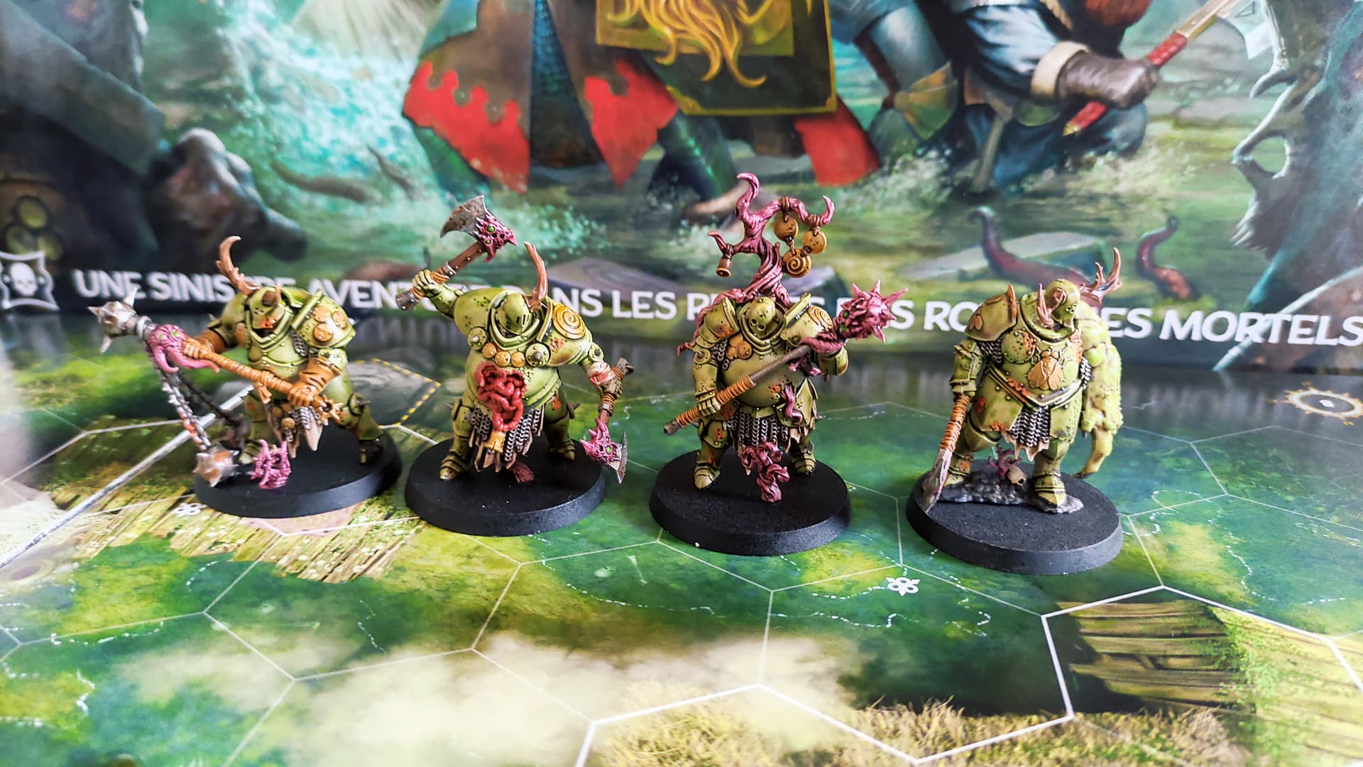 Il y a aussi une photo de très mauvaise qualité qui tourne sur le net, où on aperçoit le contenu global (des séides de Nurgle en ennemi, 7 héros a priori, plateau-livre visiblement, dans la veine Gloomhaven).