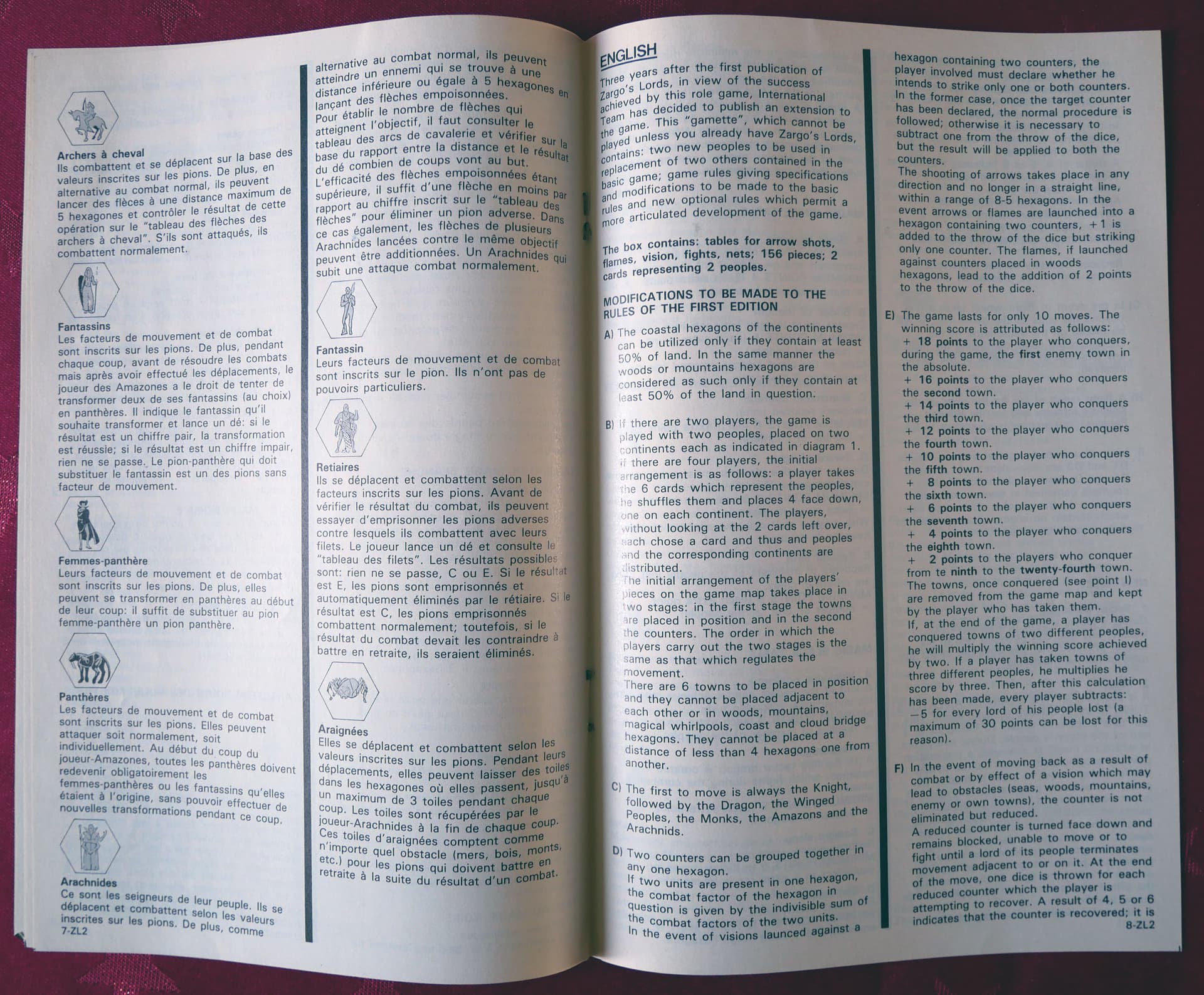 J’ai l’édition sans les Amazones et les Araignées…mais j’ai aussi Zargos dans lequel on les retrouve. A propos de Zargos, Je sais pas si tu as lu mon petit récit du FIJ de Cannes, ça m’a fait quelque chose d’y croiser monsieur Duccio Vitale (78 ans à ce qu’on m’a dit) qui expliquait sa nouvelle création… Sinon j’ai rencontré une personne d’une asso (La CVPL, association pour la conservation, l’étude et la valorisation du patrimoine ludique) qui recherche des jeux comme celui-là, mais je sais pas si ils iraient jusqu’à l’acheter, ils comptent sur des dons je pense.