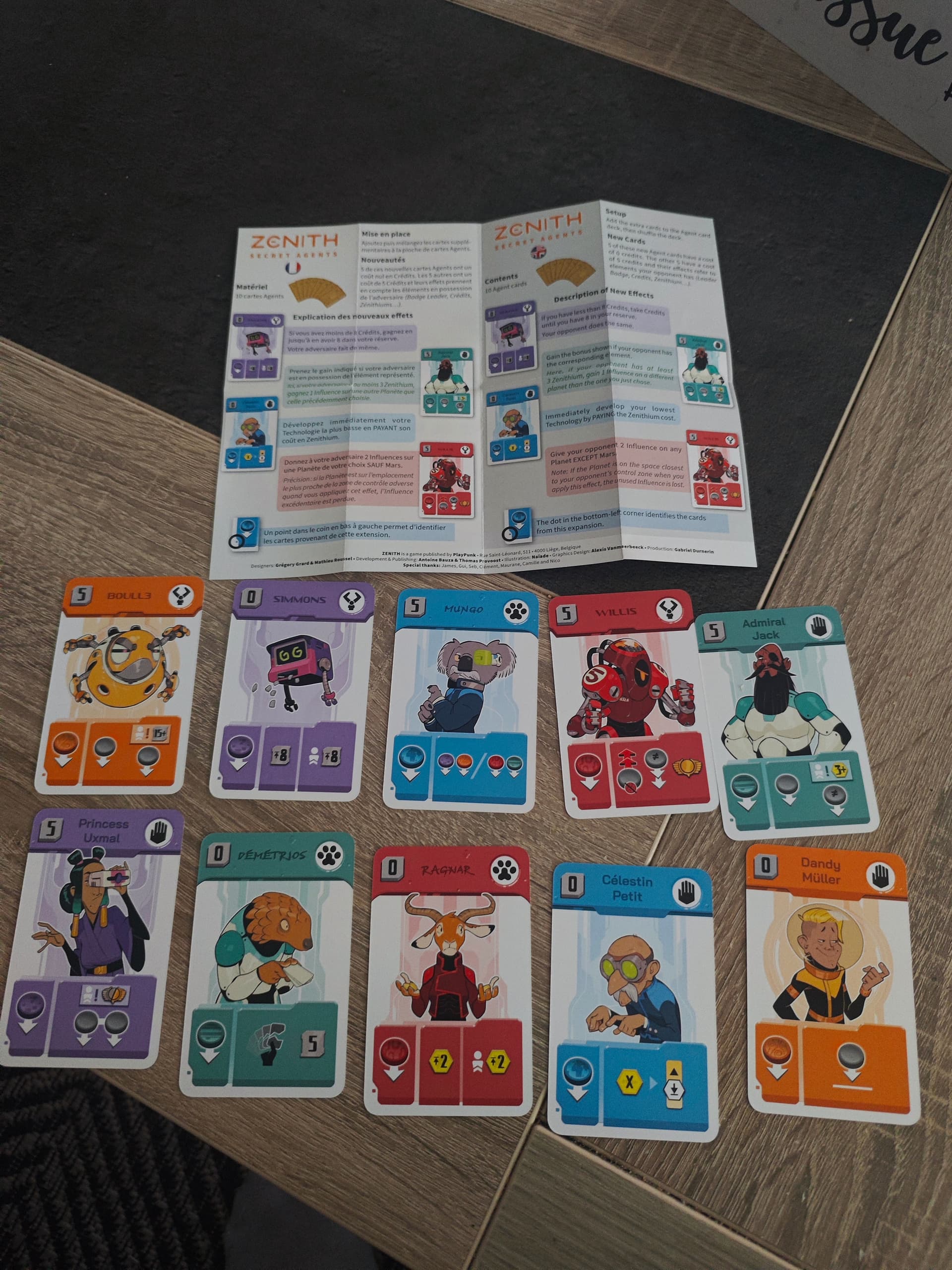 Petite incompréhension : j’ai commandé l’extension Zenith (Secret Agents), et dans le petit livret de règles, il n’y a l’explication des effets que pour 4 cartes sur les 10 contenues dans le booster.