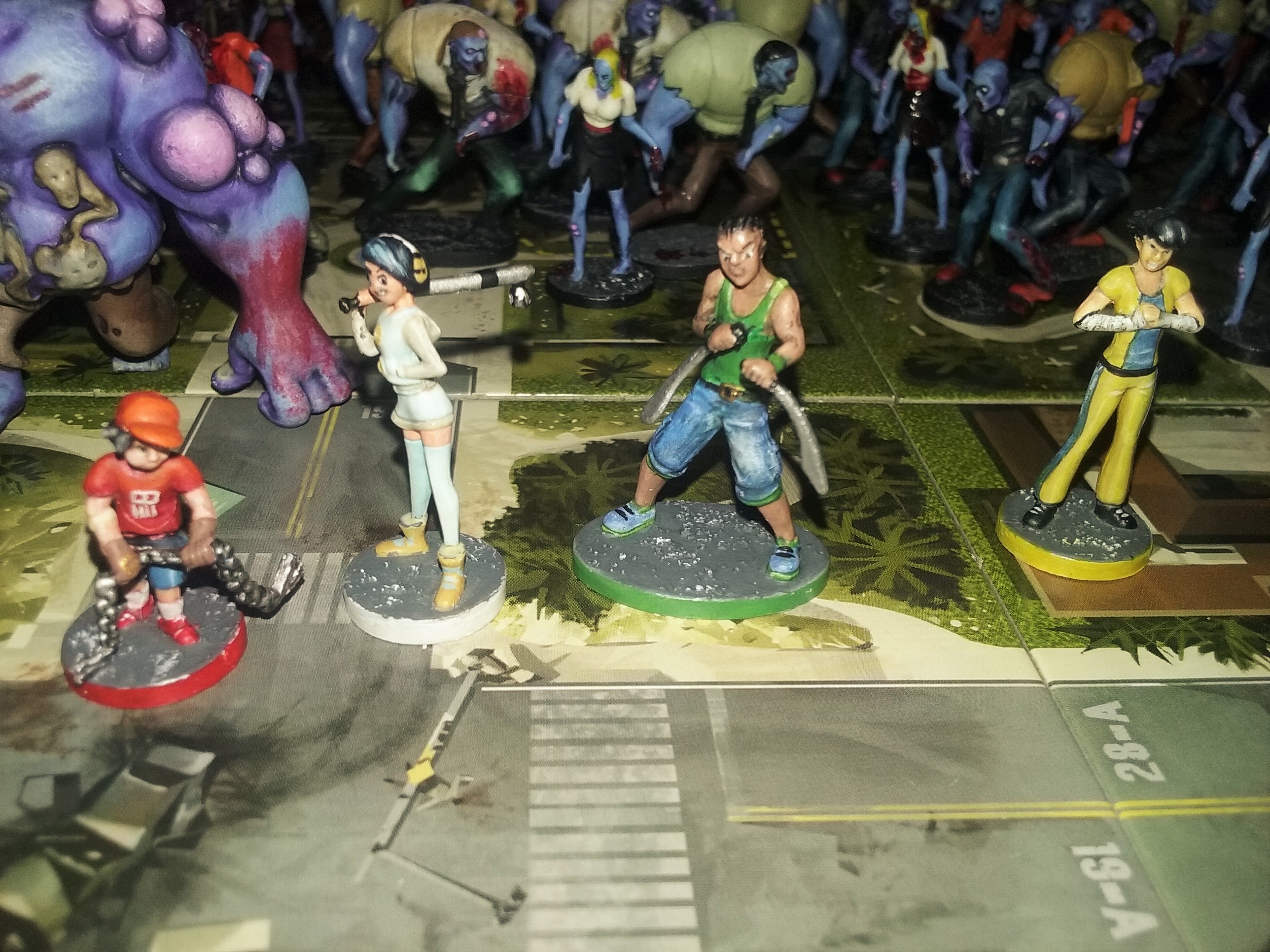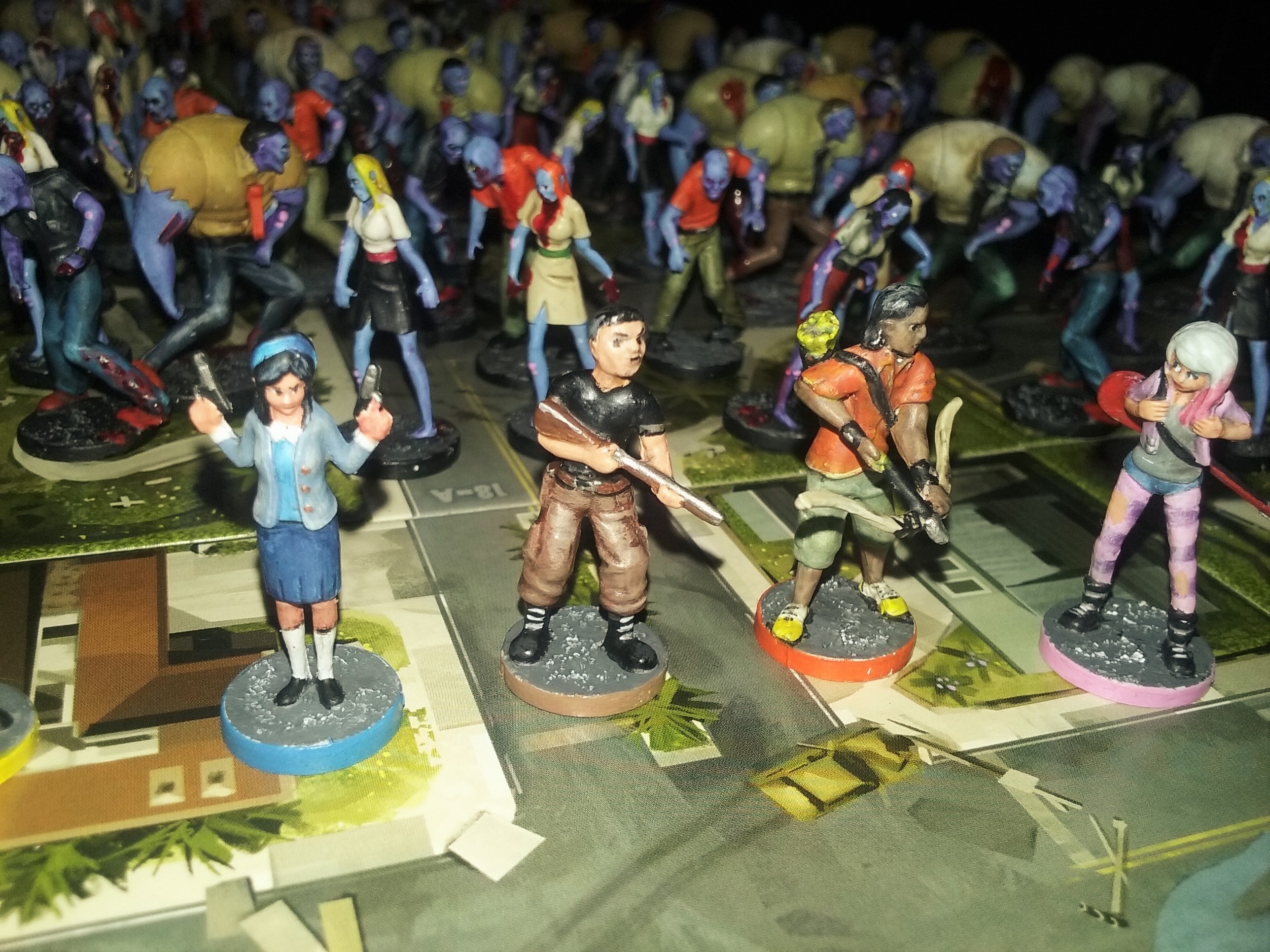 Je suis tout a fait satisfait du rendu et surtout ca m a permis de progresser un peu mais si c etait a refaire maintenant, je les ferais probablement en plus rapide (seulement pour les zombies) : soit en monochrome par brossages comme certains l ont fait dans le sujet zombicide, soit limiter aux applats avec un lavis trempette.